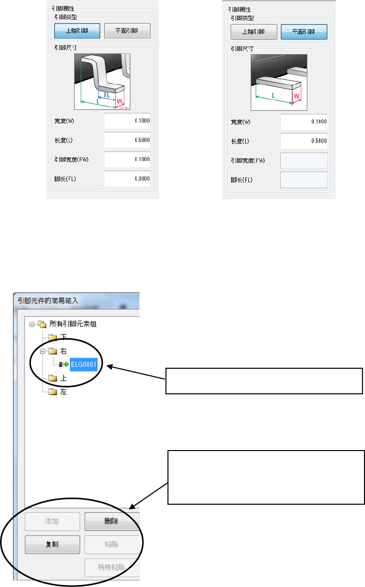·引脚属性(上翘(鸥翼形)引脚) · 引脚属性(平面引脚)