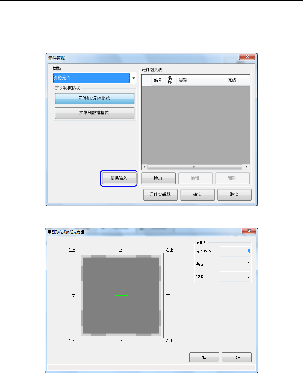 ① 在元件要素数据画面中选择“外形元件类”,并选择「简易输入」。