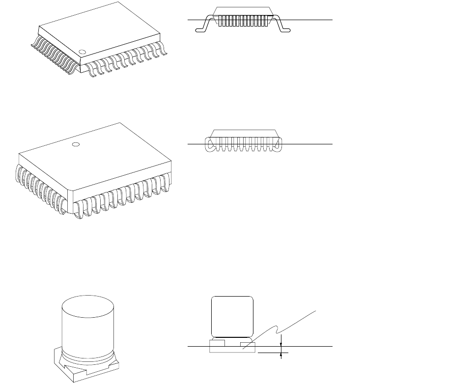 第 1 部 基本篇 第 1 章 装置概要 1- 53 1) 贴片元件 的表面 有凹 凸或弯曲时, 会影响吸取效果, 造成吸取不良、 精度不良, 发生激光识别错 误等。 ( 有时可通过 改变吸嘴编号来 处理。 ) < 吸取不良的例子 > 激光识别 < 精度不良的例 子 > 吸嘴 一字槽 凹面 阳文 § 关于贴片元件形状 § 注意