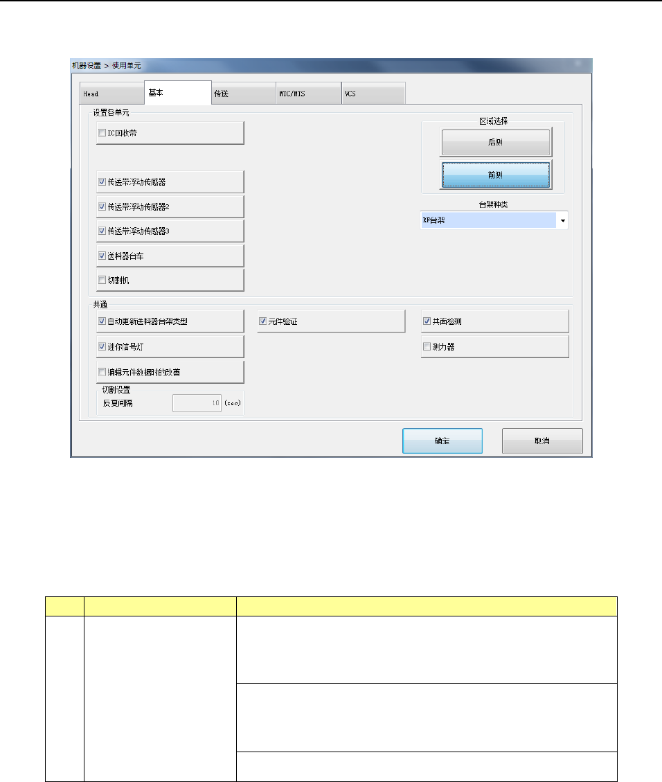 第 2 部 功能详 解篇 第 8 章 机器设置 8-7 (2) 设置方法 1) 用复选按钮,指定所要使用的 装置单元。 带勾选标记即设置为 使用,没有勾选标 记则设置为不 使用。 2) H ead 从不使用状态变更为使用 状态时, 请解除 Head 的锁定。 解除后各 H ead 要进行返回 原点。所有 Head 为伺服 OFF 时,请按 照画面的指示,执行全轴 返回原点。 3) H ead 从使用状态变更为不使用 状态时, 请固定该 …