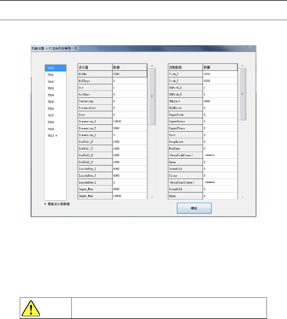 左侧的列表框显示目前已注册的吸嘴信息的吸嘴号码一览。