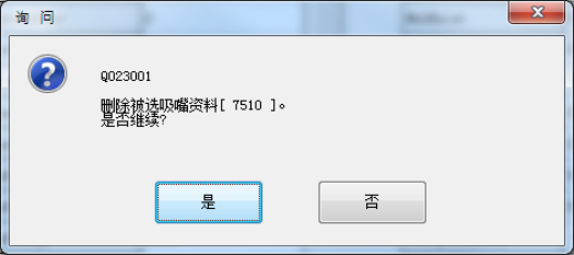 选择吸嘴号一览中的吸嘴号码,按下 [Del] 键(删除键)后,会显示如下画面,可删除已注册的吸