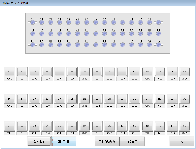 勾选需要分配的 ATC 号,按下 [自动取得] 按钮,则自动依次设置勾选 ATC 号的吸嘴。
