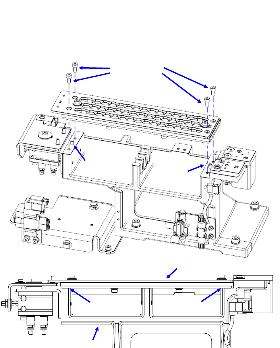 (2) 请确认确实安装了 4 处托盘固定螺丝(M4 六角孔),R-ATC 与 ATC 基座紧密接触。