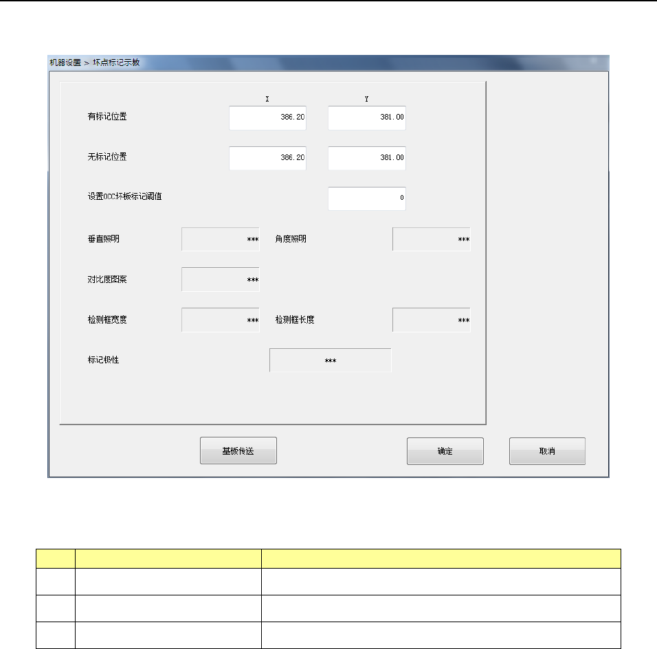 有标记位置 坏板标记中心位置的 X 坐标、Y 坐标