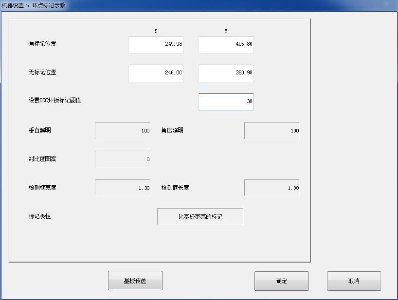 设置 OCC 坏板标记阈值 用摄像机识别坏板标记时的阈值