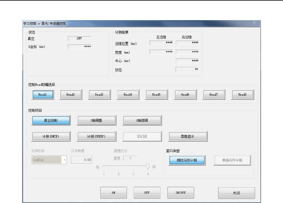 控制 Head 真空的 ON/OFF,Z 轴坐标,激光计测结果,在控制结束时显示。