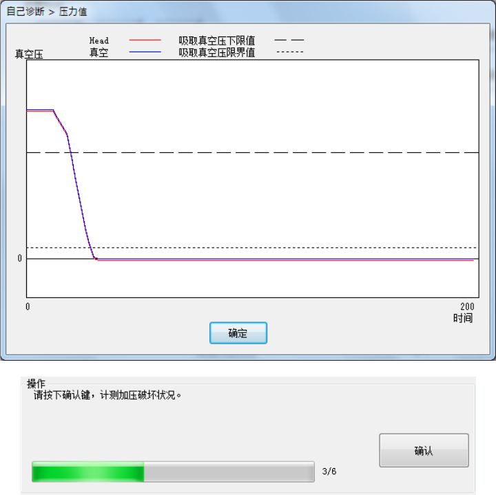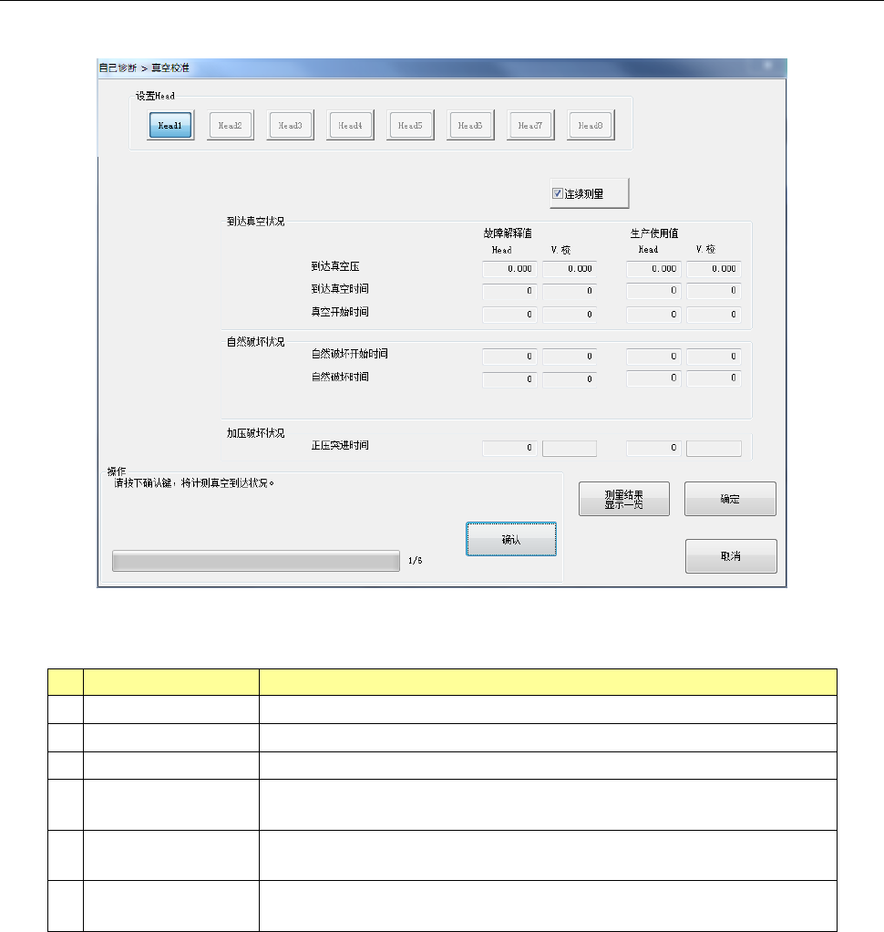 设定 Head 在真空校准上移动,计测真空到达状况 3 次。