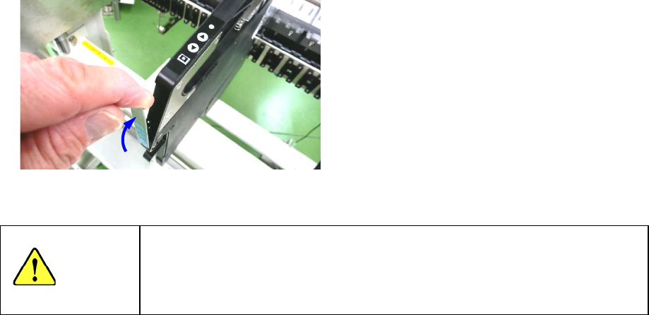 第 2 部 功能 详解篇 第 12 章 选项 组件 12 -3 ( 7) 请将锁紧释放杆搬回 ,确认 供料 器 已被固定。 图 12 -1- 11 注意 · 将生产中必要 的供料器安装到生 产程序所指定的 位置后, 在供料器 之间所 有未安装供料器的位 置上,要安装上 不使用的供料器 ,以保证没有手或 手 指伸入的间隙,确保 安全。