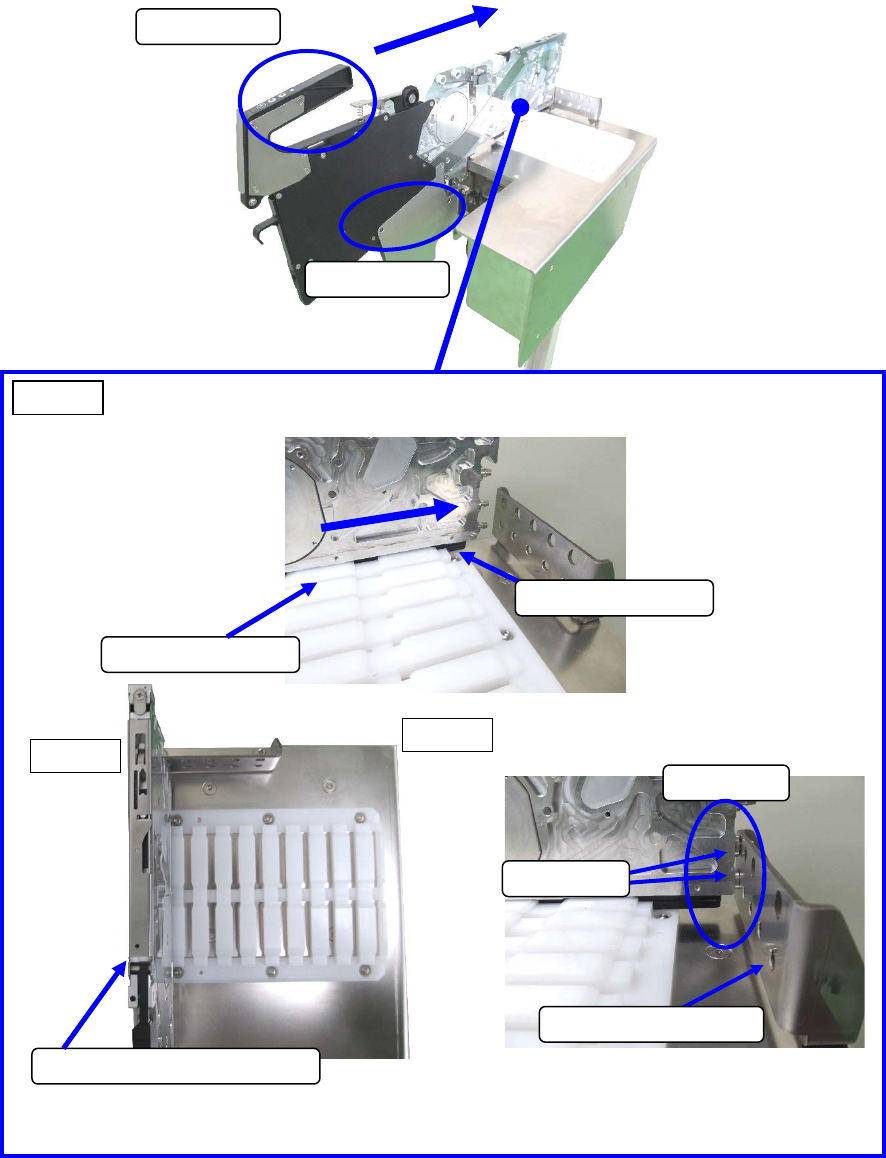 第 2 部 功能 详解篇 第 12 章 选项 组件 12 -5 ( 7) 确认滑动轨道的前端 已确实插入工作底 座,插入供料 器。 握住把手 用手托住 工作底座 放大图 滑动轨道 使用左端 的轨道 上面图 侧面图 顶住 导向销 F 定位板