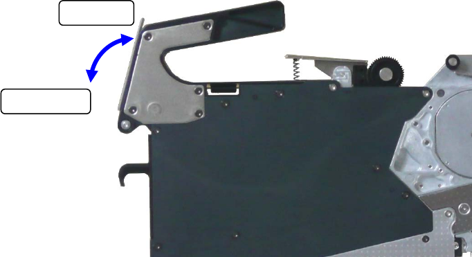 (8) 操作供料器的锁紧释放杆,在导向销 F 顶住定位板的位置的状态下将供料器紧固在带卷安装台上。