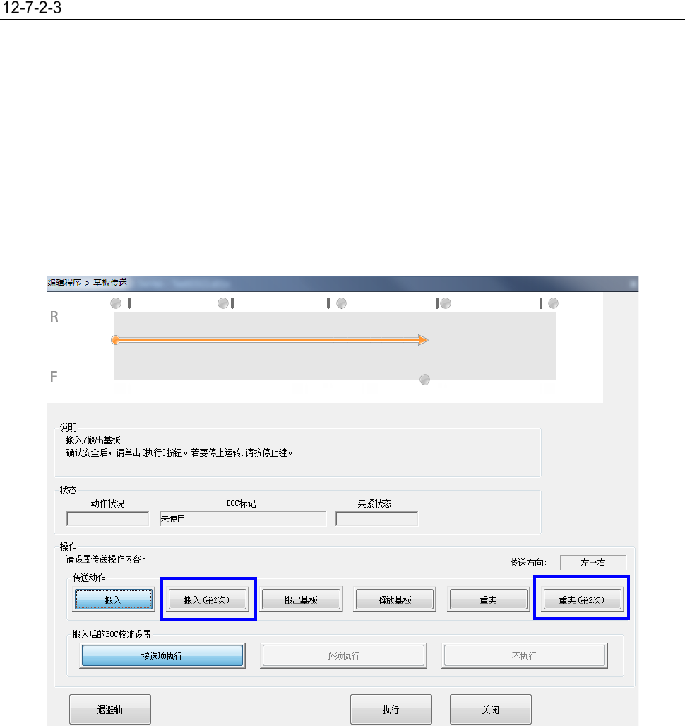 第 2 部 功能 详解篇 第 12 章 选项 组件 12 - 42 BOC 标记 12 -7-2-3- 1 标记示教 夹紧基板后实施 BOC 标 记的示教。对第 1BOC 标记 在挡块位置夹紧, 对第 2B OC 标记, 在 HM S 实施夹紧的状态 下进行示教。 可以由基板传送分别 实施夹紧。 12 -7-2-3- 2 基板传送 由「基板传送」实施 的挡块位置夹紧, 与以往一样通 过「搬入基板」按钮 进行选择。 使用 HM S 进行的…