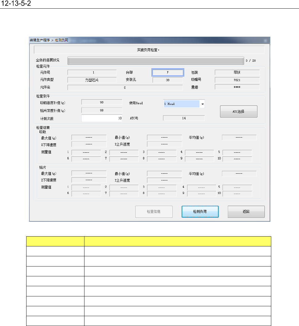 ATC 选择 显示负荷检查时使用的吸嘴 ATC 编号。