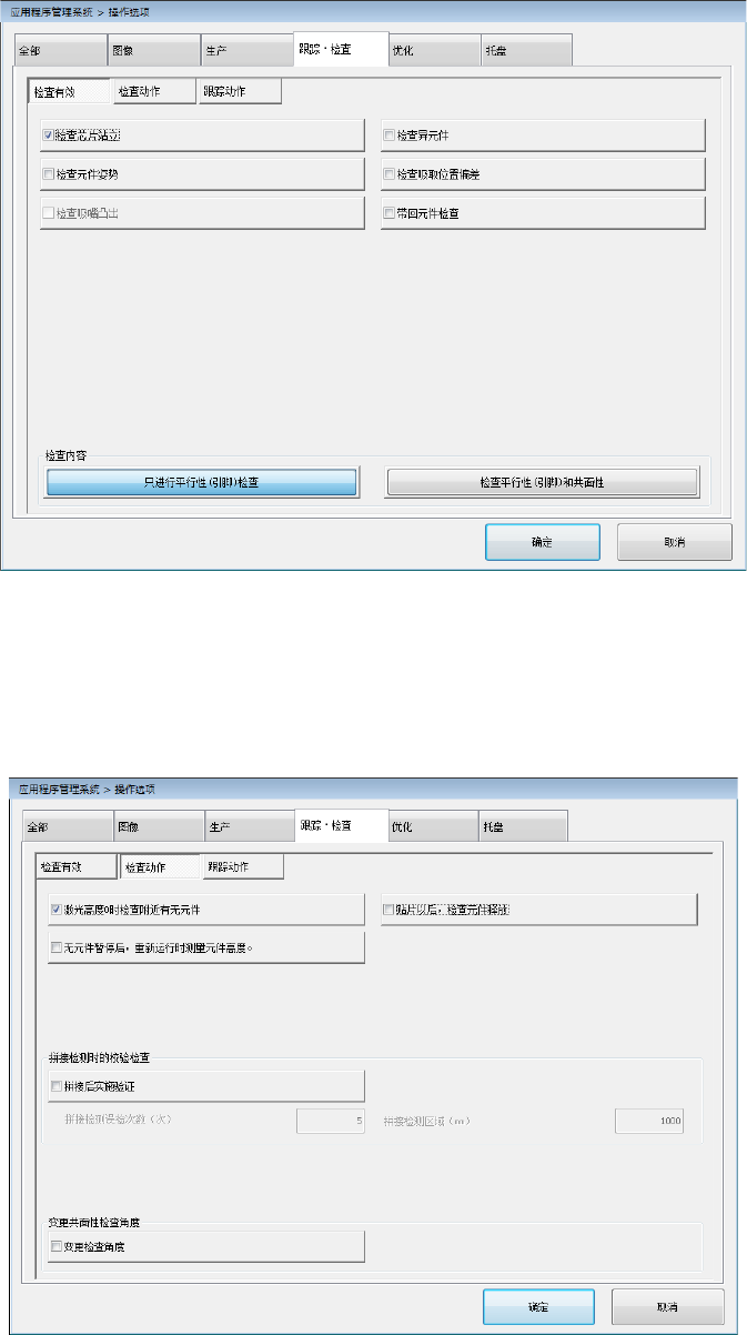 请从菜单选择 [机器设定] - [操作选项] 打开操作选项画面,选择 [跟踪・检查] - [检查有效] 选项卡。