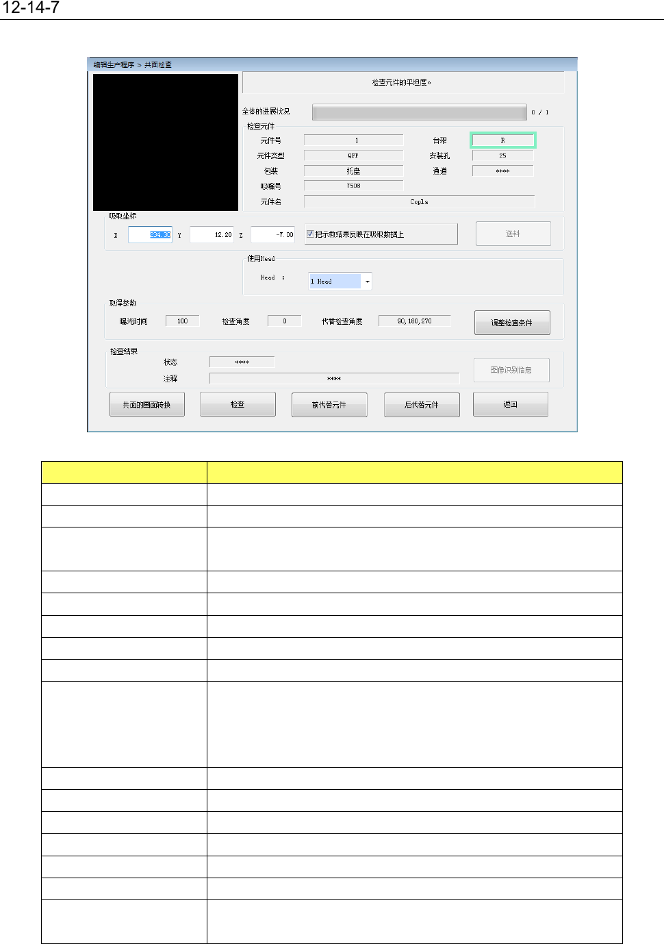 吸取坐标 显示吸取元件的吸取位置的内容。