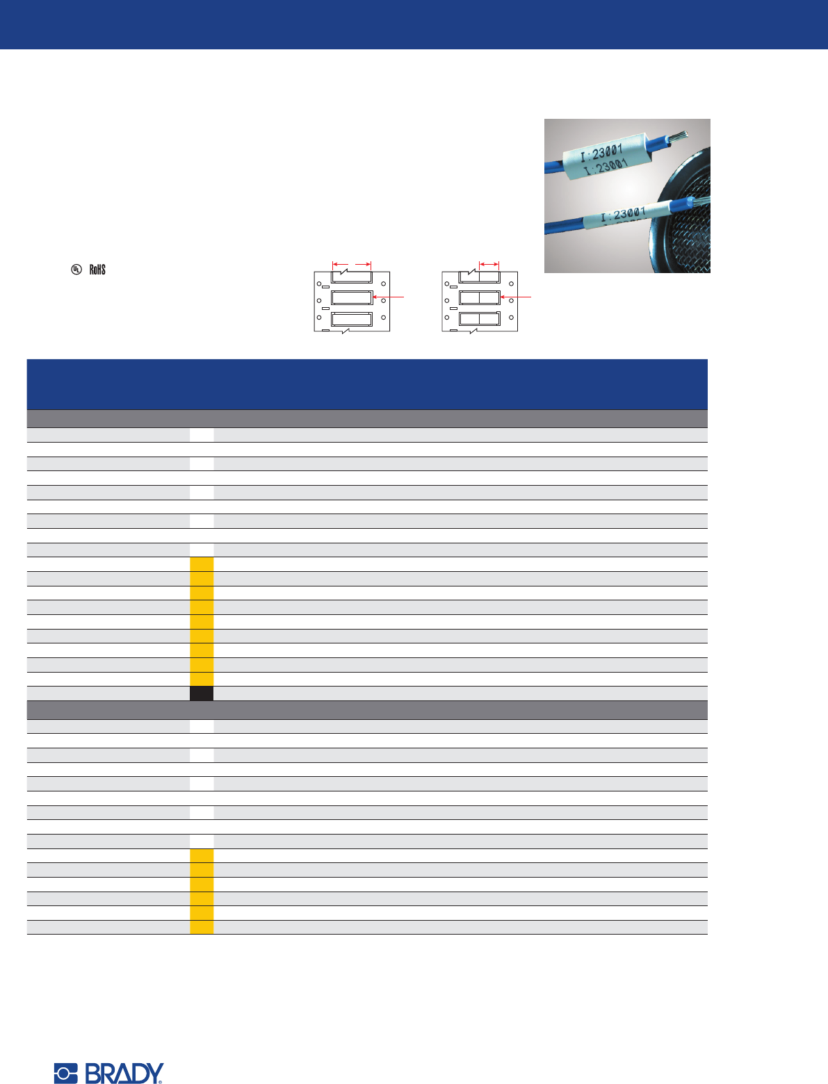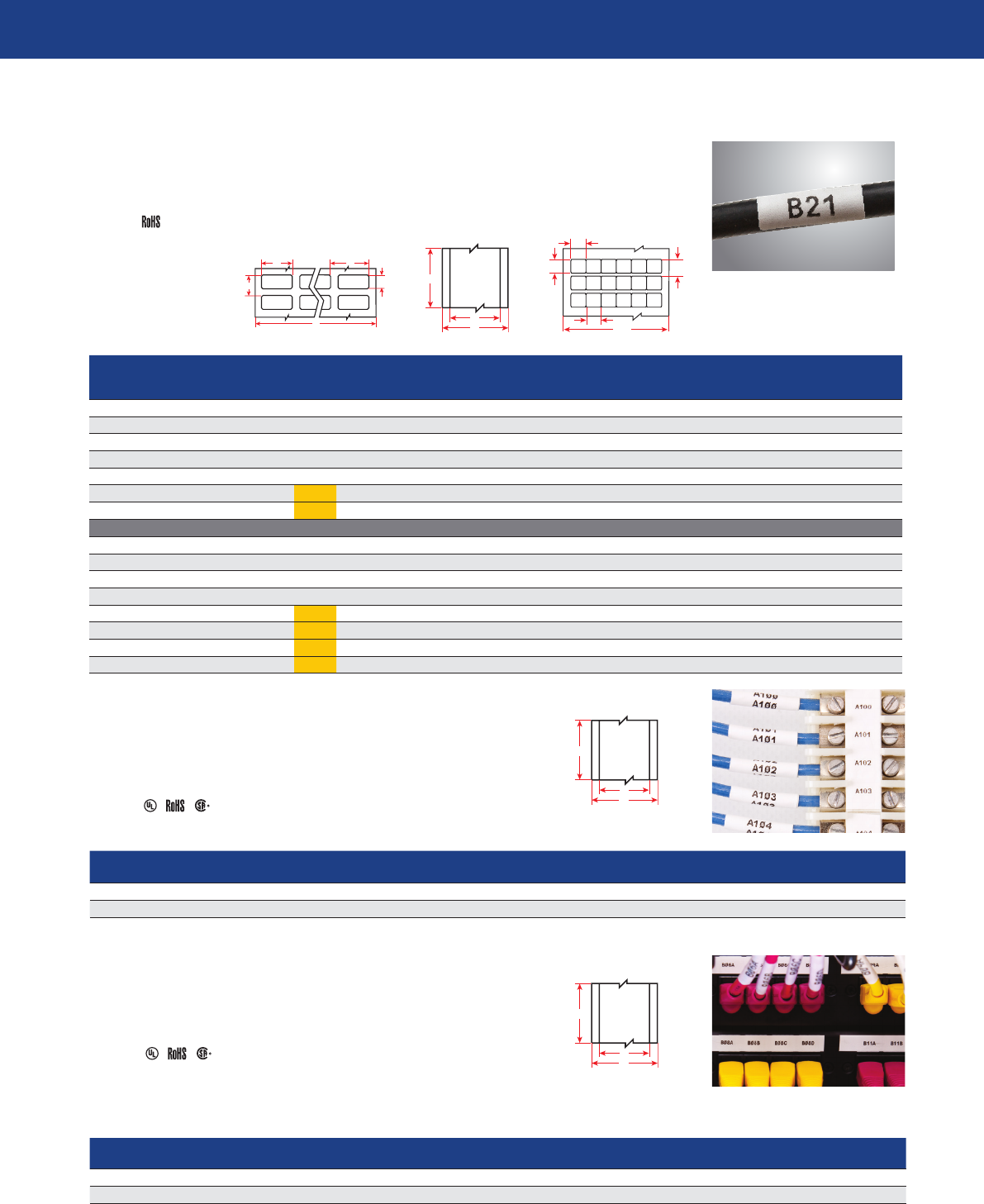 Brady .com.cn/i3300 17 端子排粘合标签 (B-498) • 特别设计的窄宽度连续标签 , 用于接线端子和接线板的对齐 • 独特的粘胶和乙烯布结构设计有极强的粘附性 , 并且易于清理 , 揭下后还可重新粘贴 工作温度: -40 ° F 至 175 ° F 机构认证 : ® 接线板胶条 (B-422) • 3 种宽度的连续标签 , 使接线板和其他数据通信组件的标签制作快 捷 、方 便 • 高强度粘胶适用于粗糙、 纹理密…
