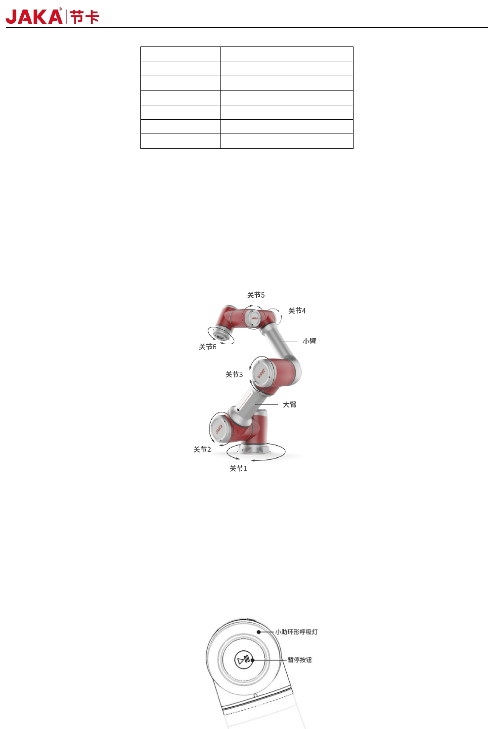 节卡小助系列协作机器人在末端配有指示灯和暂停按钮。