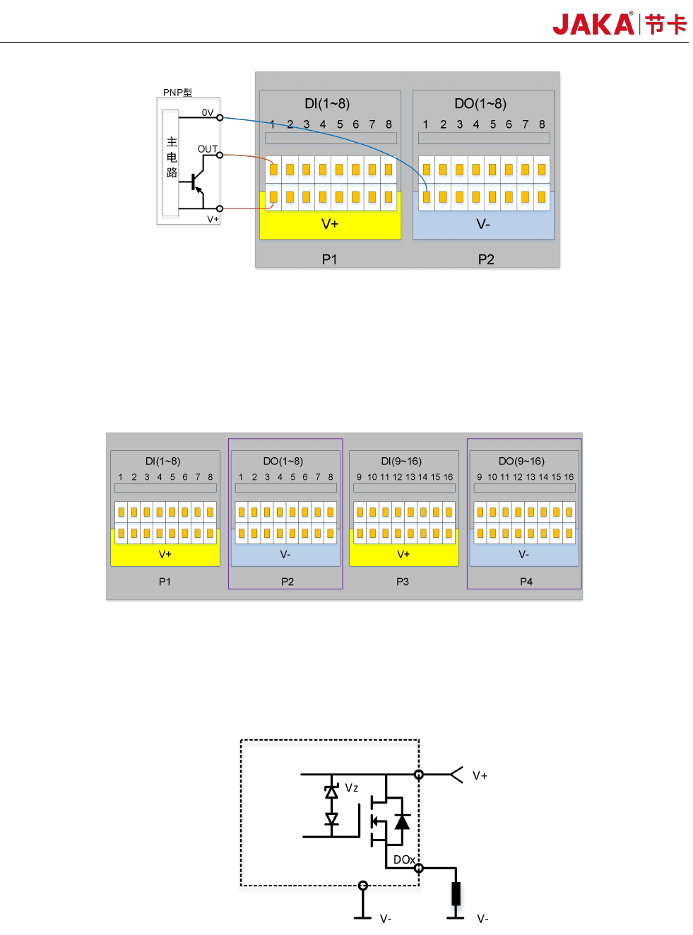 电控柜配备有 16 路数字量 PNP 型信号输出(DO1~DO16),支持隔离信号输出。