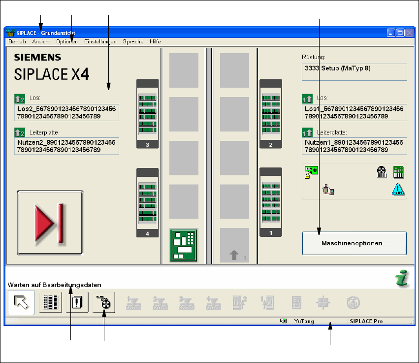 Abb. 3.2 - 1 Komponenten der Bedienoberfläche (Beispiel: Grundansicht SIPLACE X4)