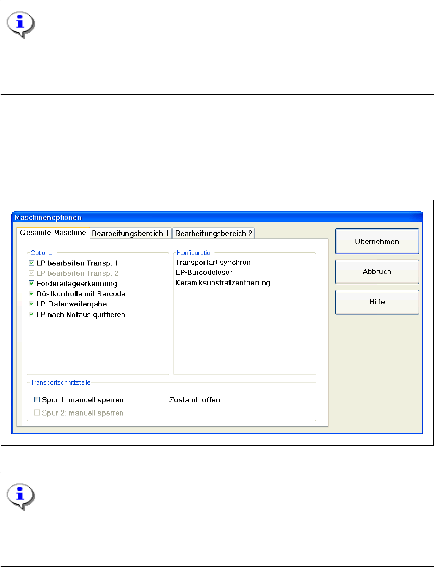 Es werden nur Maschinenoptionen angezeigt, die an der aktuellen Station konfiguriert sind. 3