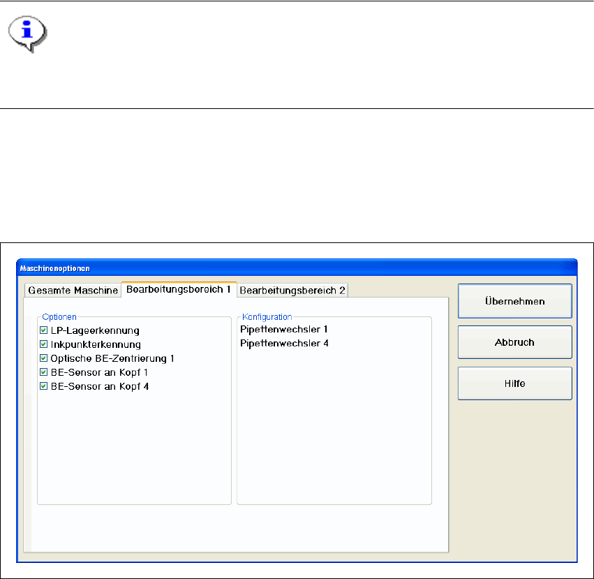 Es werden nur Maschinenoptionen angezeigt, die an der aktuellen Station konfiguriert sind. 3
