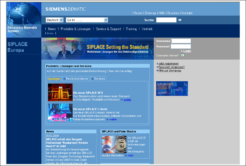 Abb. 1.1 - 1 SIPLACE Homepage