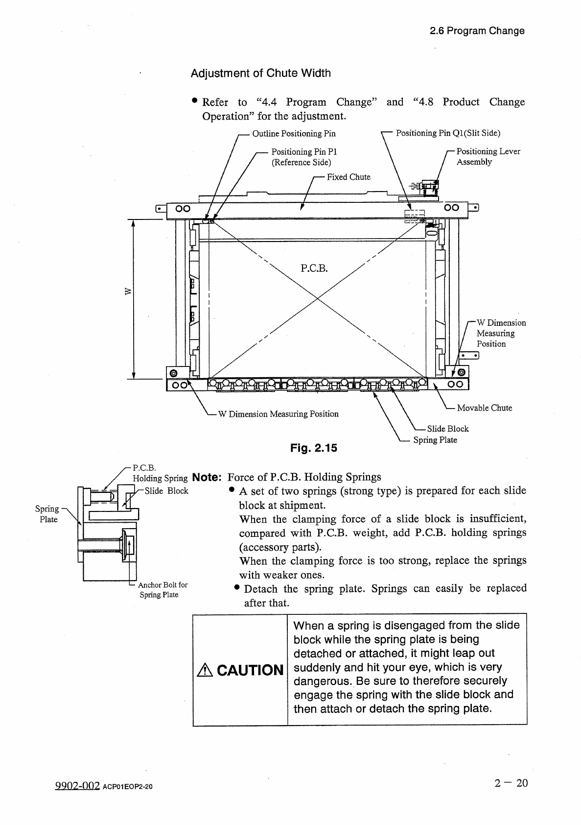 2.6 Program Change Attachment and Adjustment of Positioning Lever • Adjust the positioning lever according to the P . C . B . size and attach it with a flanged bolt . • Anchor the lever with the bolt such that the positi…