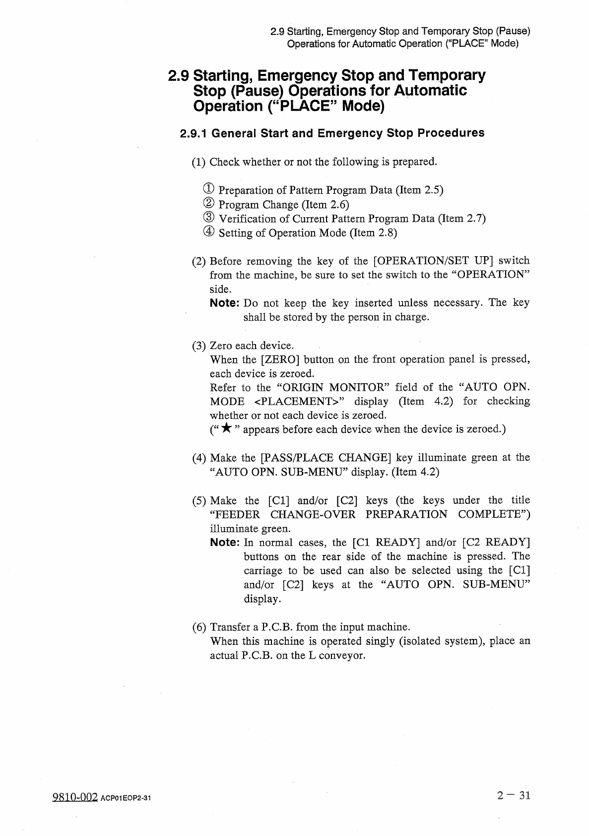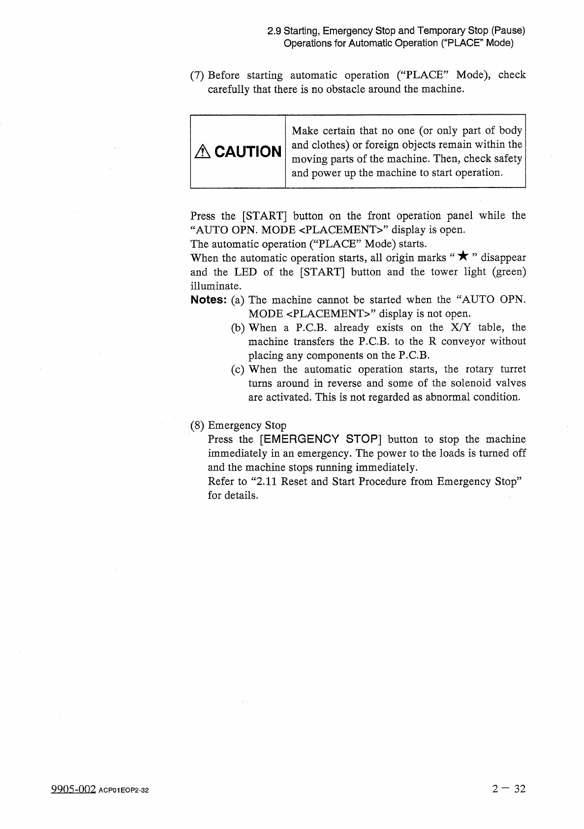 2 , 9 Starting , Emergency Stop and Temporary Stop ( Pause ) Operations for Automatic Operation ( “ PLACE ” Mode ) 2.9 Starting , Emergency Stop and Temporary Stop ( Pause ) Operations for Automatic Operation ( “ PLACE ”…