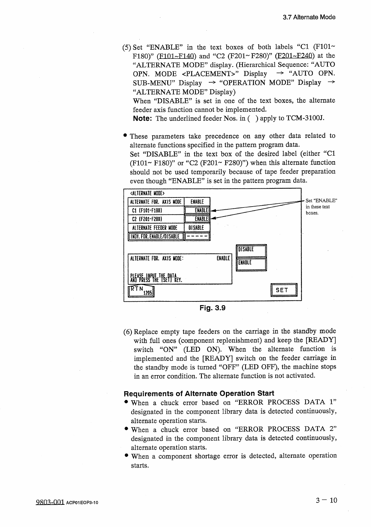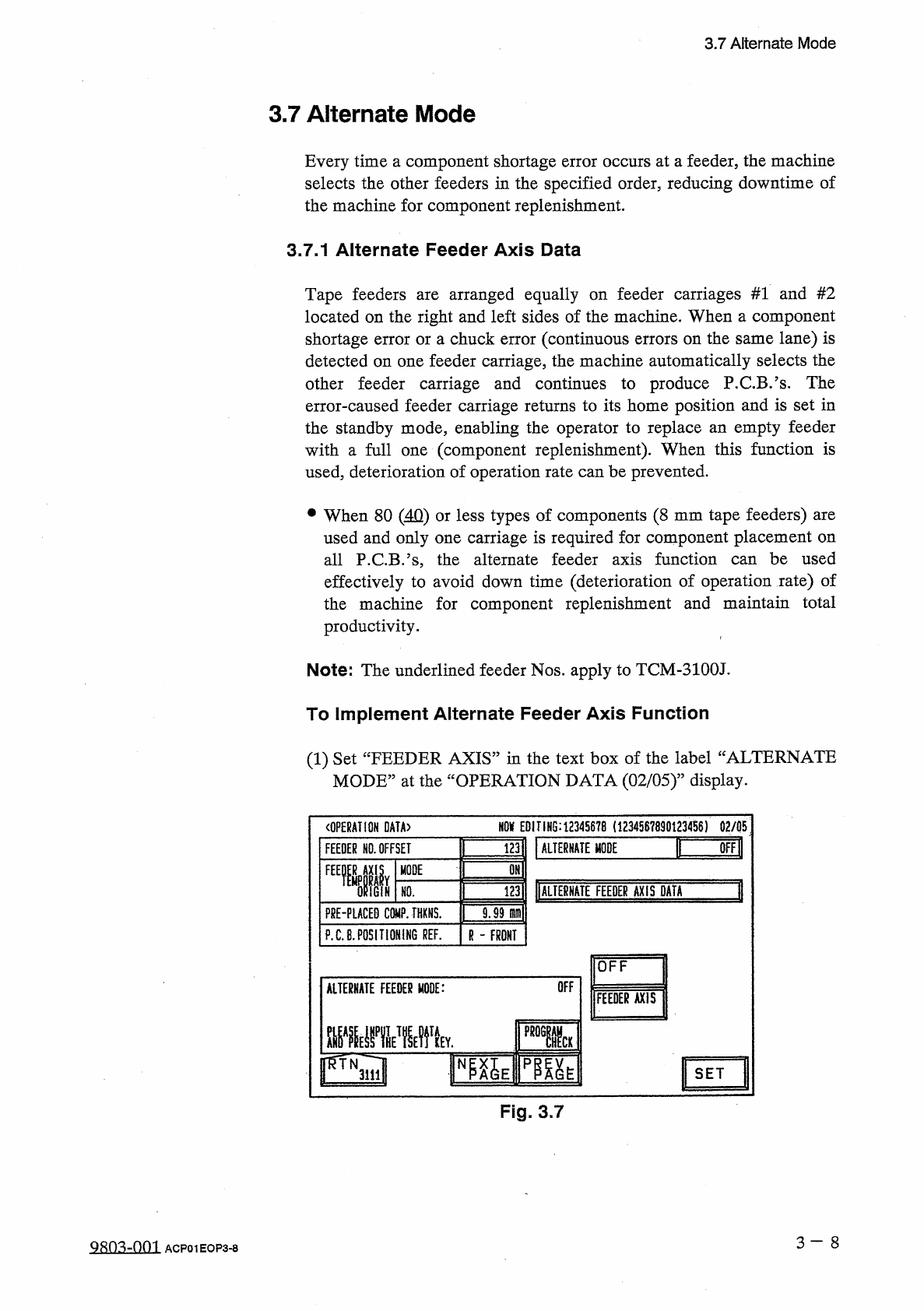 3.7 Alternate Mode ( 2 ) Set alternate feeder axis data . When the [ ALTERNATE FEEDER AXIS DATA ] key is pressed , the following display appears on the screen . 〈 ALTERNATE FEEDER AXIS DATA 〉 NOV EDITING : 12345678 ( 123…