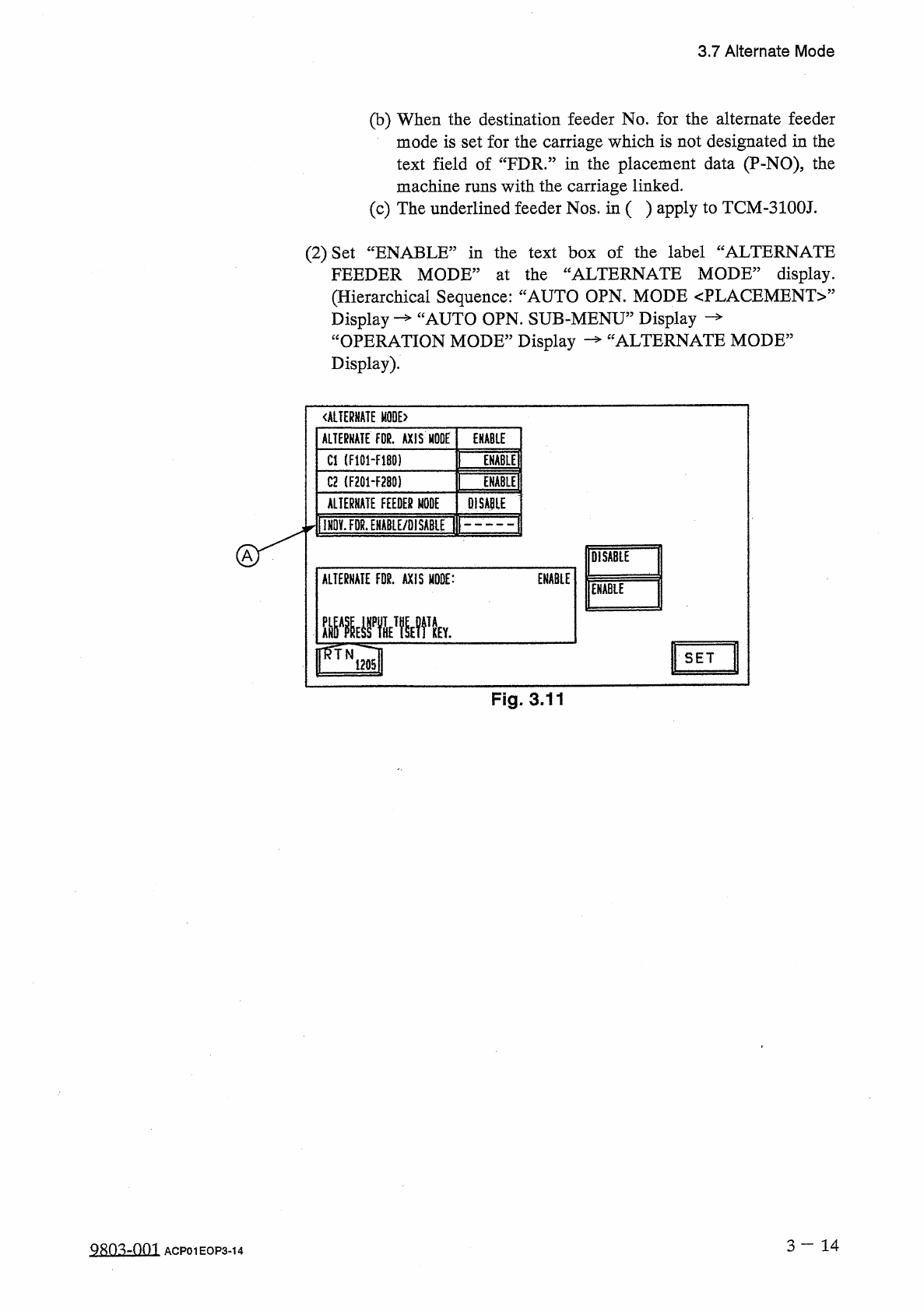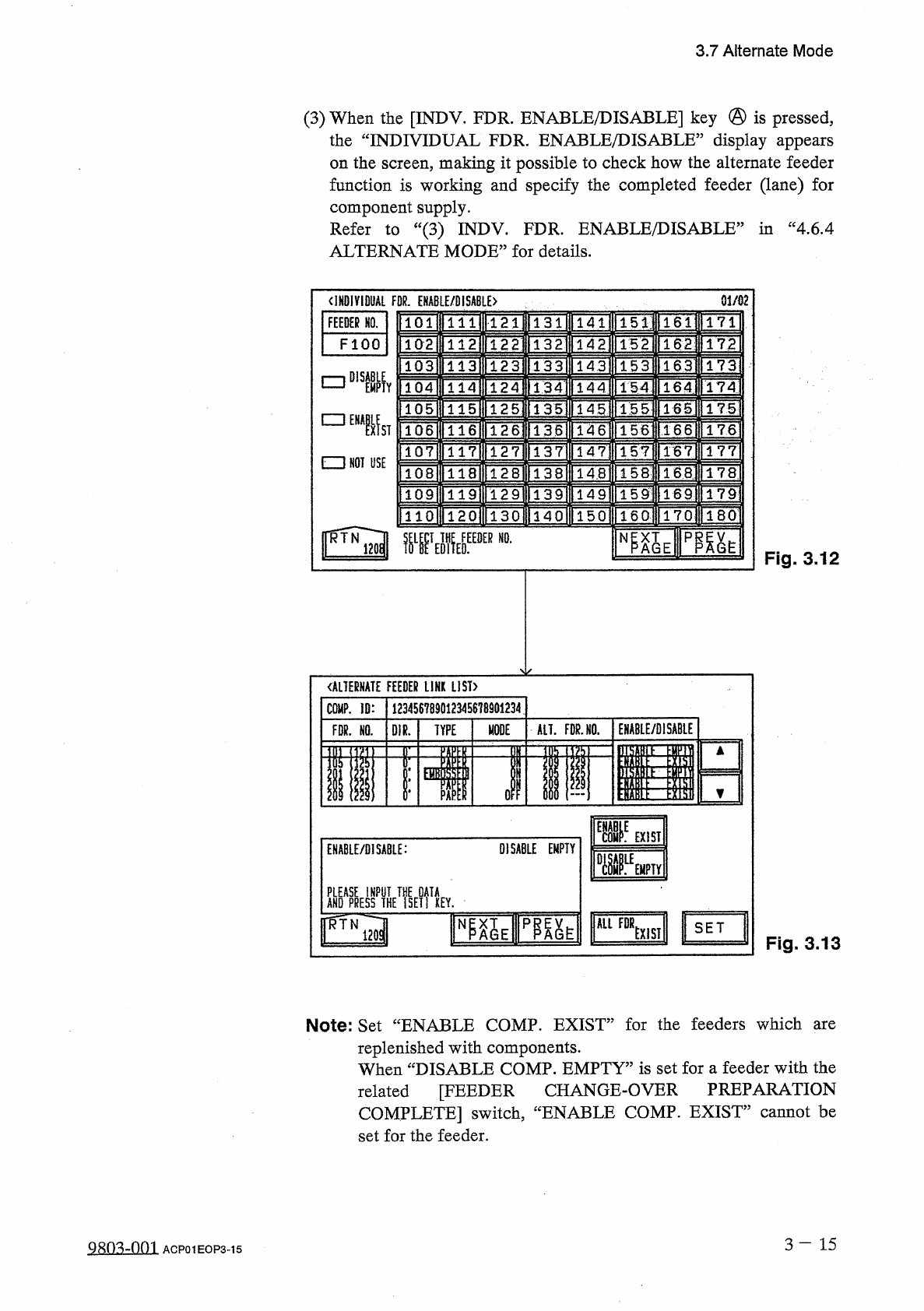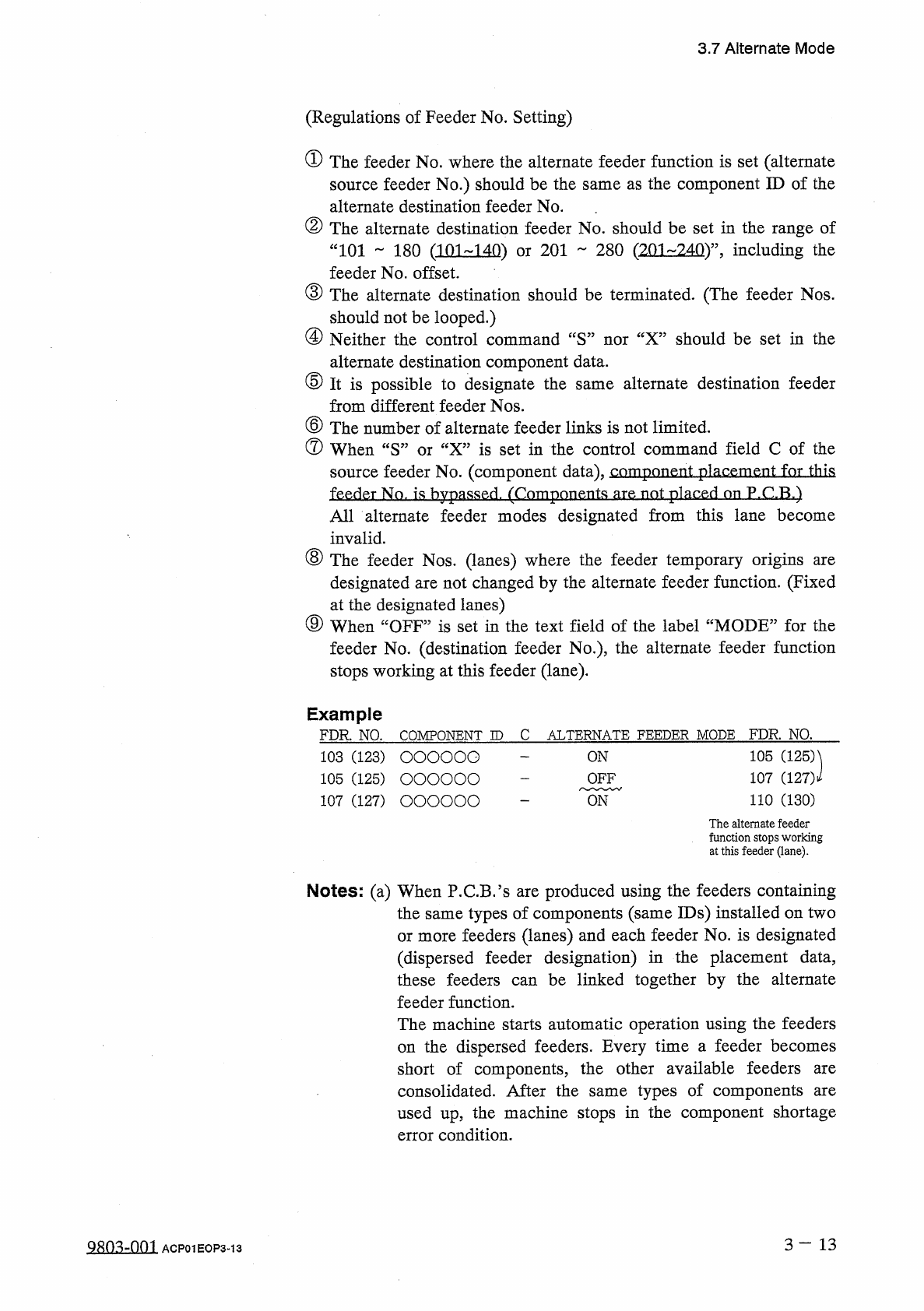 3.7 Alternate Mode ( b ) When the destination feeder No . for the alternate feeder mode is set for the carriage which is not designated in the text field of “ FDR . ” in the placement data ( P - NO ) , the machine runs w…