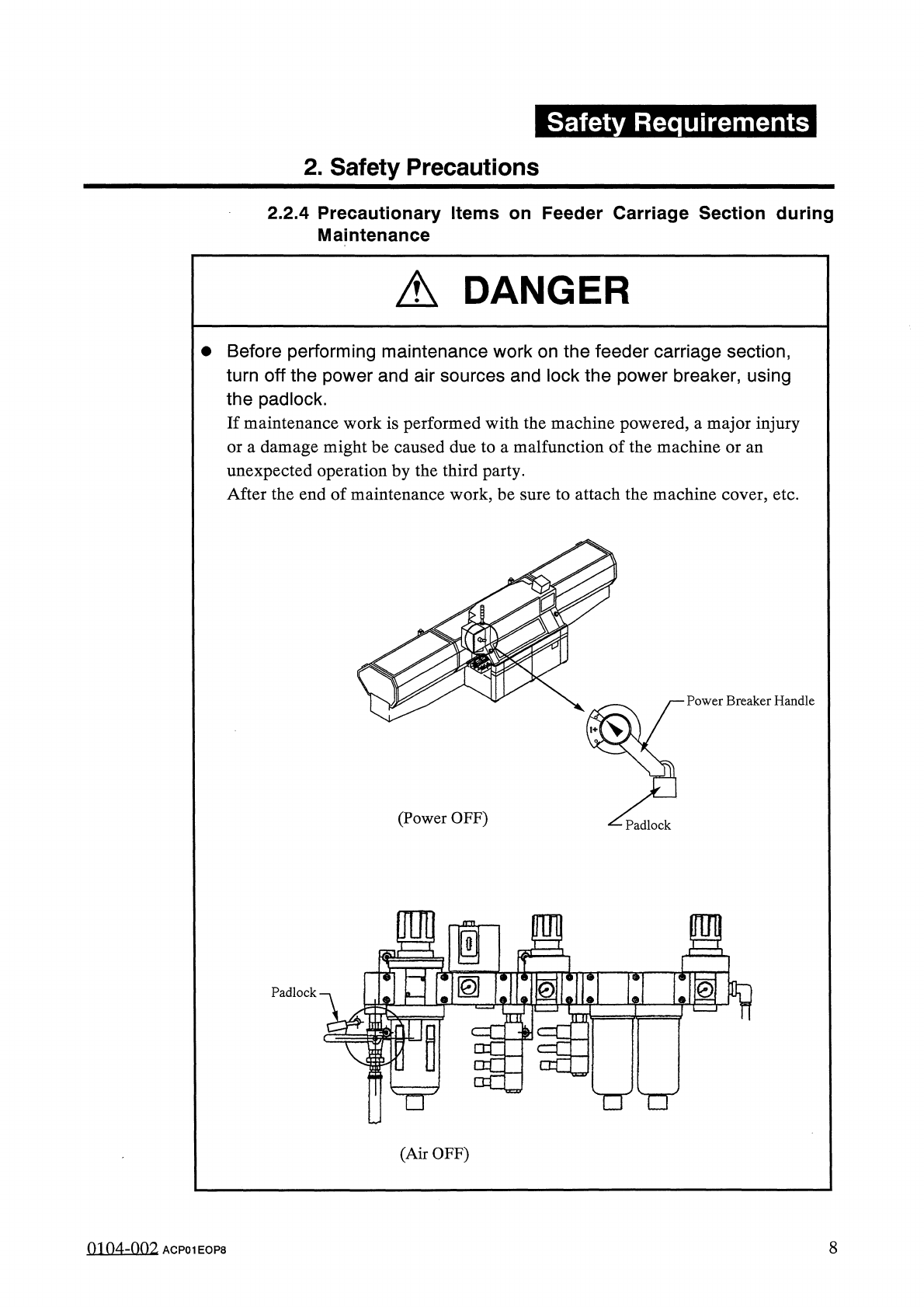 Safety Requirements 2 . Safety Precautions 2.2 . 3 Precautionary Items on Feeder Carriage Section during Setup Operation A DANGER A tape feeder must be installed or replaced with another one at the feeder home position s…