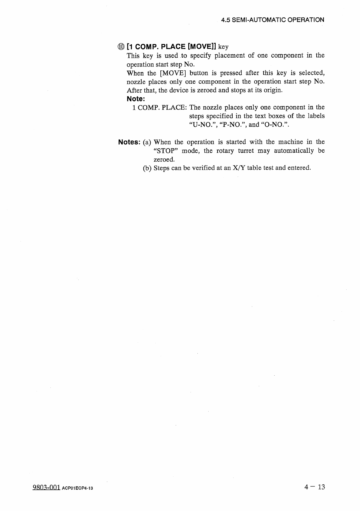 4.5 SEMI - AUTOMATIC OPERATION ③ Entered Parameter Display Section When the [ SET ] key is pressed , the displayed parameter is specified as operation start step . ④ Comment of the step No . specified as operation start …