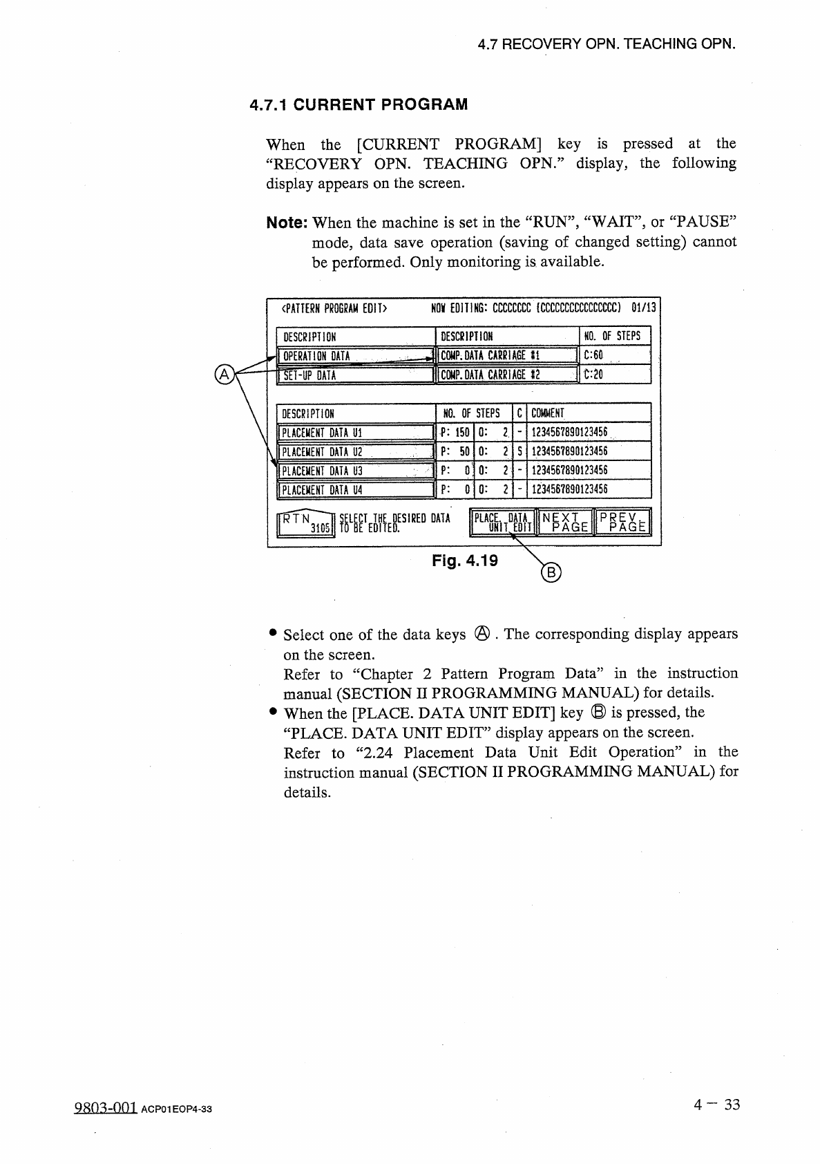 4.7 RECOVERY OPN . TEACHING OPN . 4.7 . 2 COMPONENT LIBRARY EDIT When the [ COMPONENT LIBRARY EDIT ] key is pressed at the “ RECOVERY OPN . TEACHING OPN . ” display , the following display appears on the screen . CURRENT…