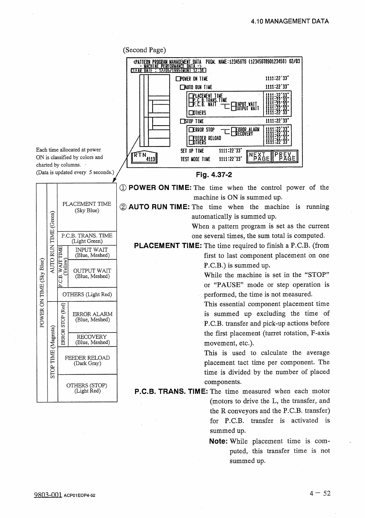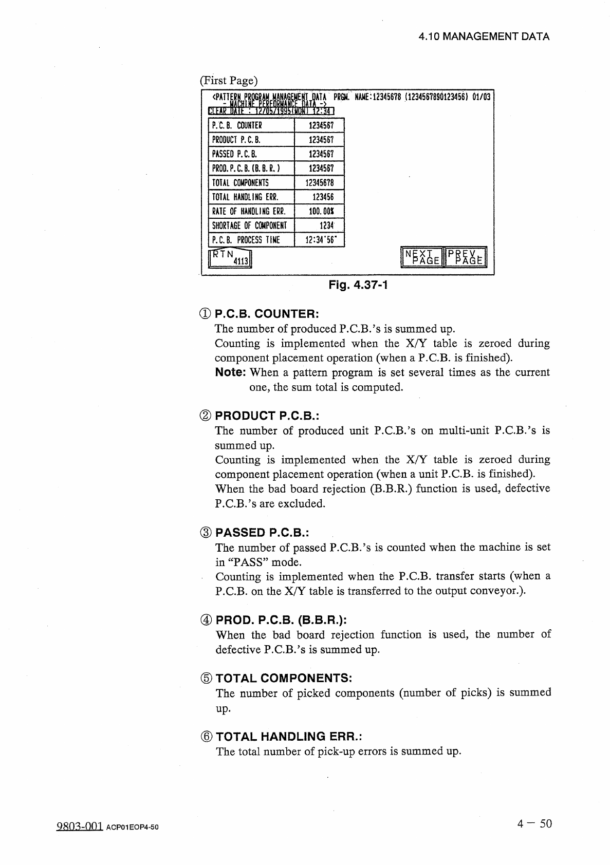 4.10 MANAGEMENT DATA ⑦ RATE OF HANDLING ERR . : The percentage of the number of picked components per total number of pick - up errors is displayed . ⑧ SHORTAGE OF COMPONENT : The number of component shortage errors is s…