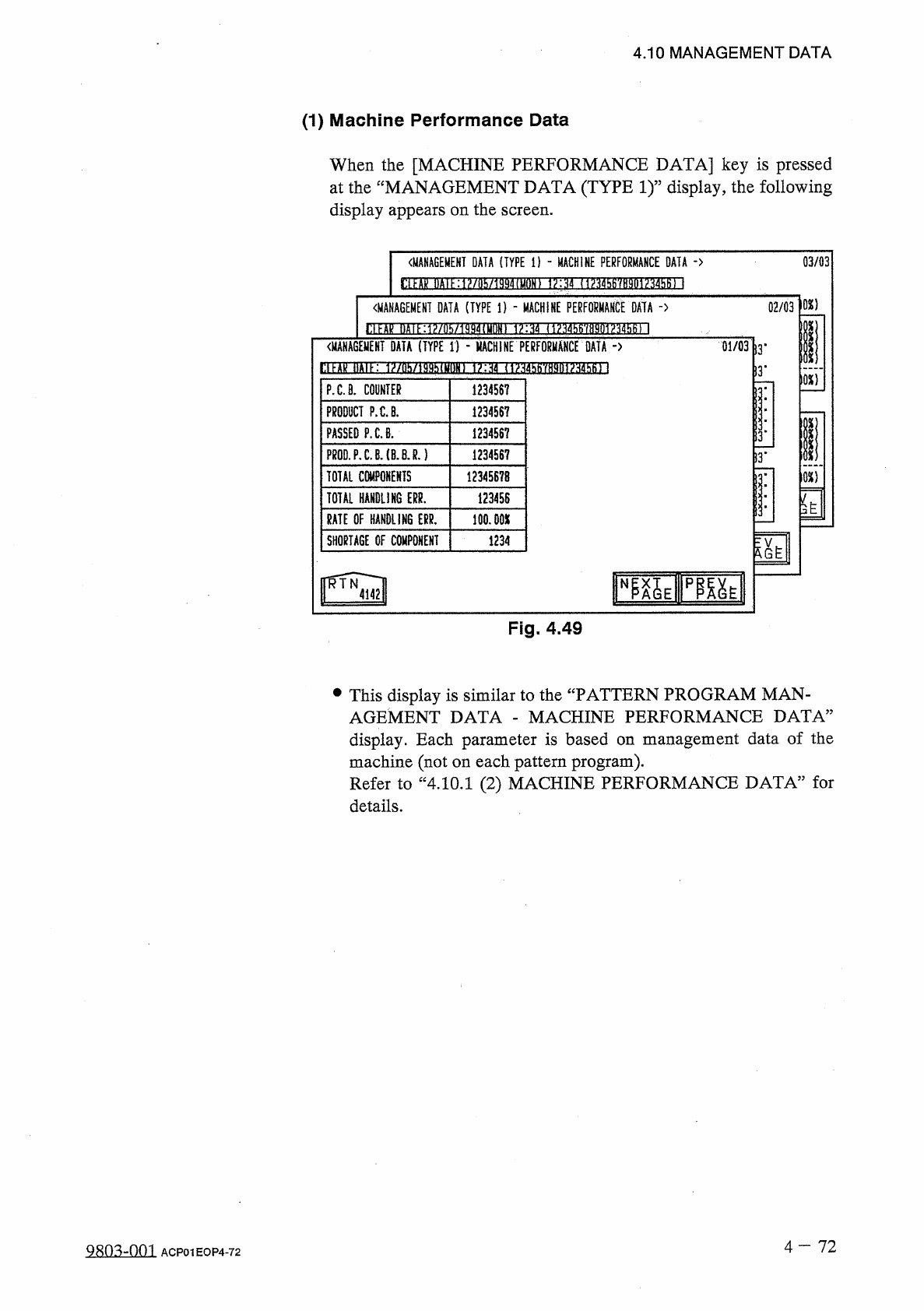 4.10 MANAGEMENT DATA ( 2 ) SUB - SYSTEM ERROR COUNTS When the [ SUB - SYSTEM ERROR COUNTS ] key is pressed at the “ MANAGEMENT DATA ( TYPE I f display , the following display appears on the screen . • Total number of err…