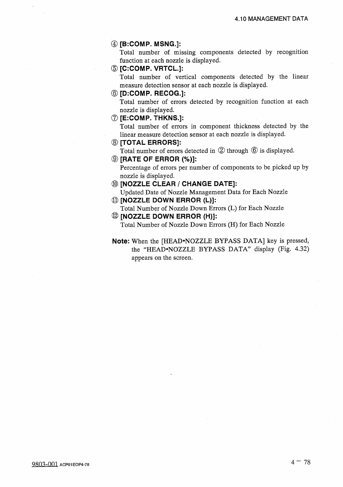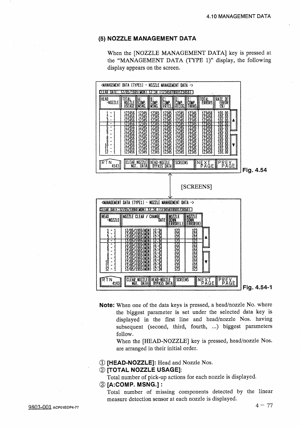 iciE ^ No ^ aHM 臨 E PP ^ E ZZLE SCREENS N DATA . 4.54 4.10 MANAGEMENT DATA ( 5 ) NOZZLE MANAGEMENT DATA When the [ NOZZLE MANAGEMENT DATA ] key is pressed at the “ MANAGEMENT DATA ( TYPE 1 ) ” display , the following dis…