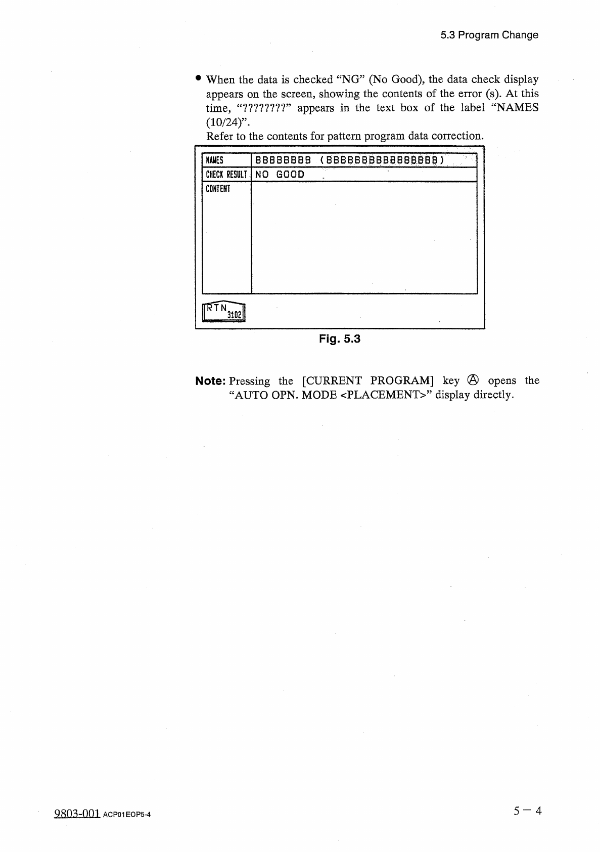 5.3 Program Change 5.3 Program Change When the [ PROGRAM CHANGE ] key is pressed at the “ MANUAL MODE ” display , the following display appears on the screen . The display can also be opened from the “ AUTO OPN . SUB - M…