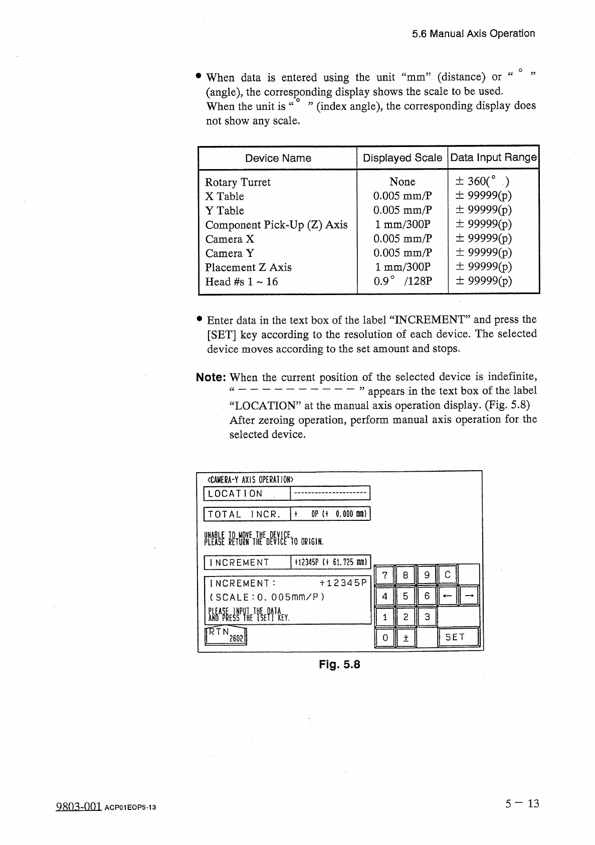 5.6 Manual Axis Operation • Select the device to be manually moved one axis by another . The display for manual axis operation of the selected device appears on the screen . [ When the unit of the entered data is “ 0 ’ ’…