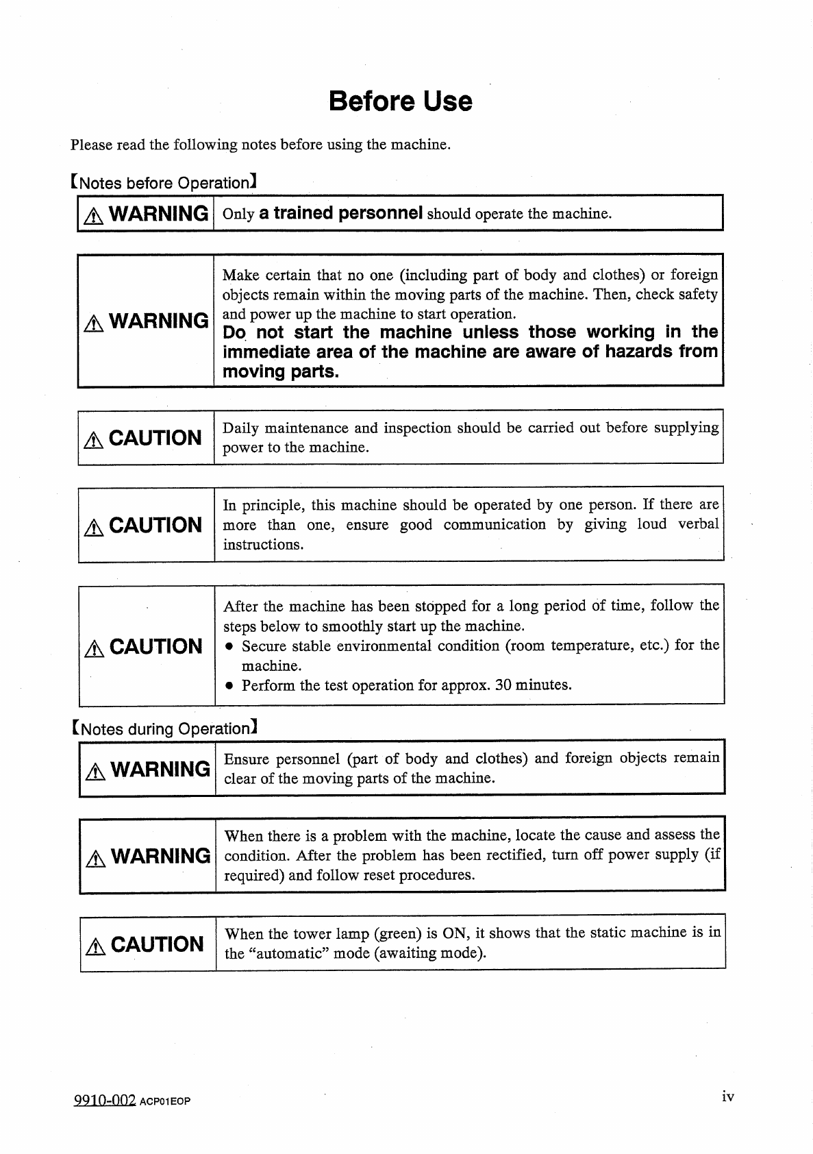 How This Manual is Organized About Safety Precaution Labels This label warns that mishandling of machine can cause instantaneous death or critical injury to the operator . A DANGER This label cautions that mishandling of…
