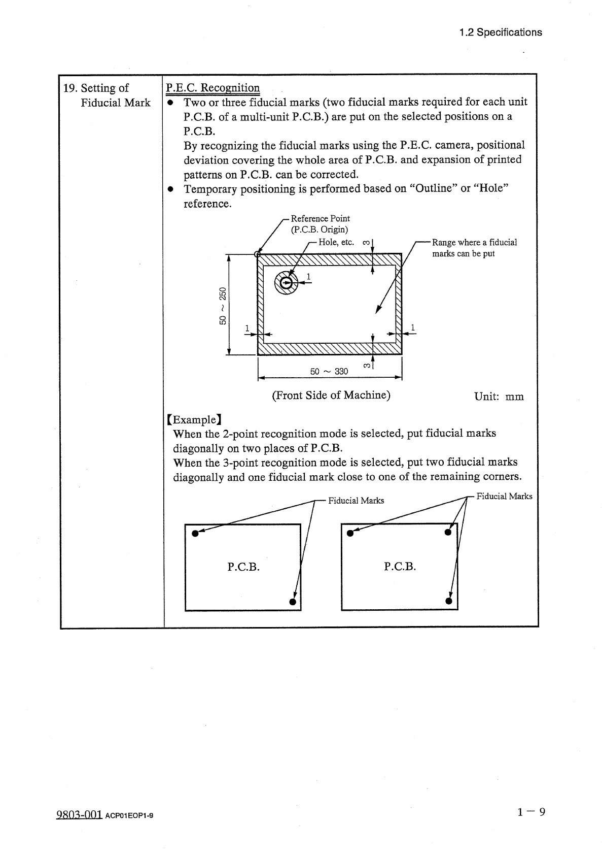 1.2 Specifications This function prevents components from being placed on the unit P . C . B . when a multi - unit P . C . B . having the same repetitive patterns is used and a bad mark is placed on the specified positio…