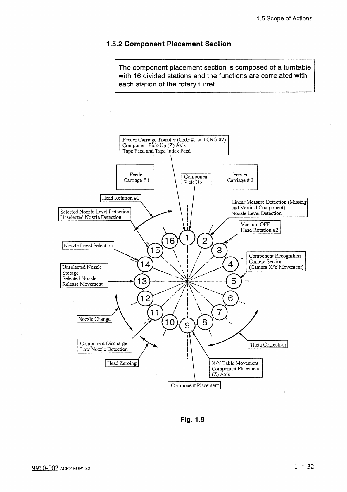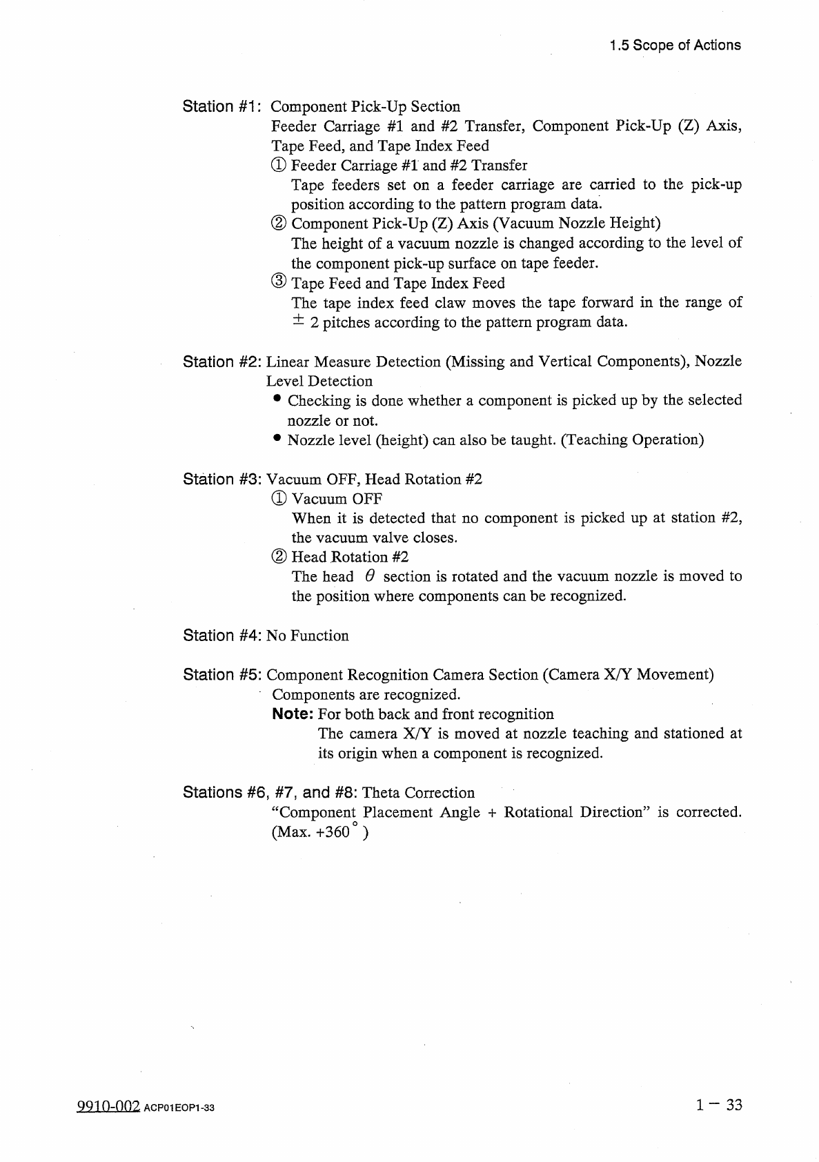 1.5 Scope of Actions Station # 1 : Component Pick - Up Section Feeder Carriage # 1 and # 2 Transfer , Component Pick - Up ( Z ) Axis , Tape Feed , and Tape Index Feed ① Feeder Carriage # 1 Tape feeders set on a feeder ca…