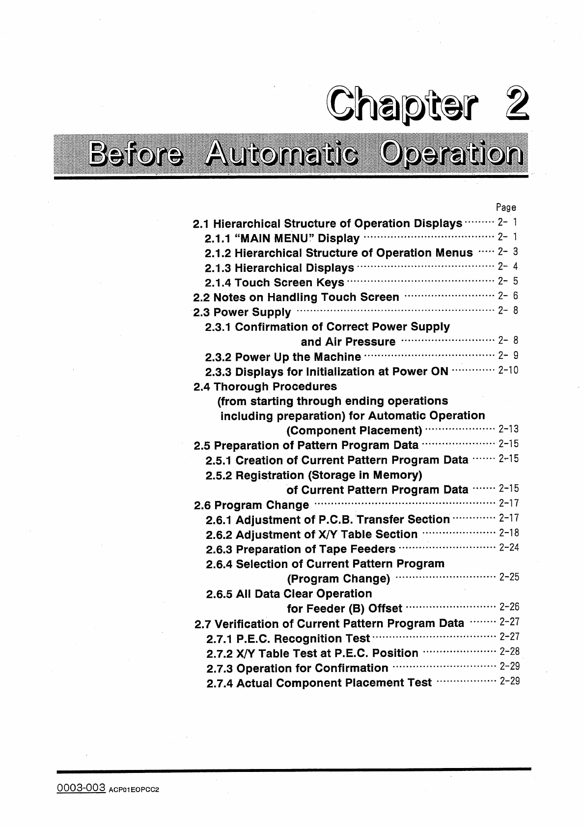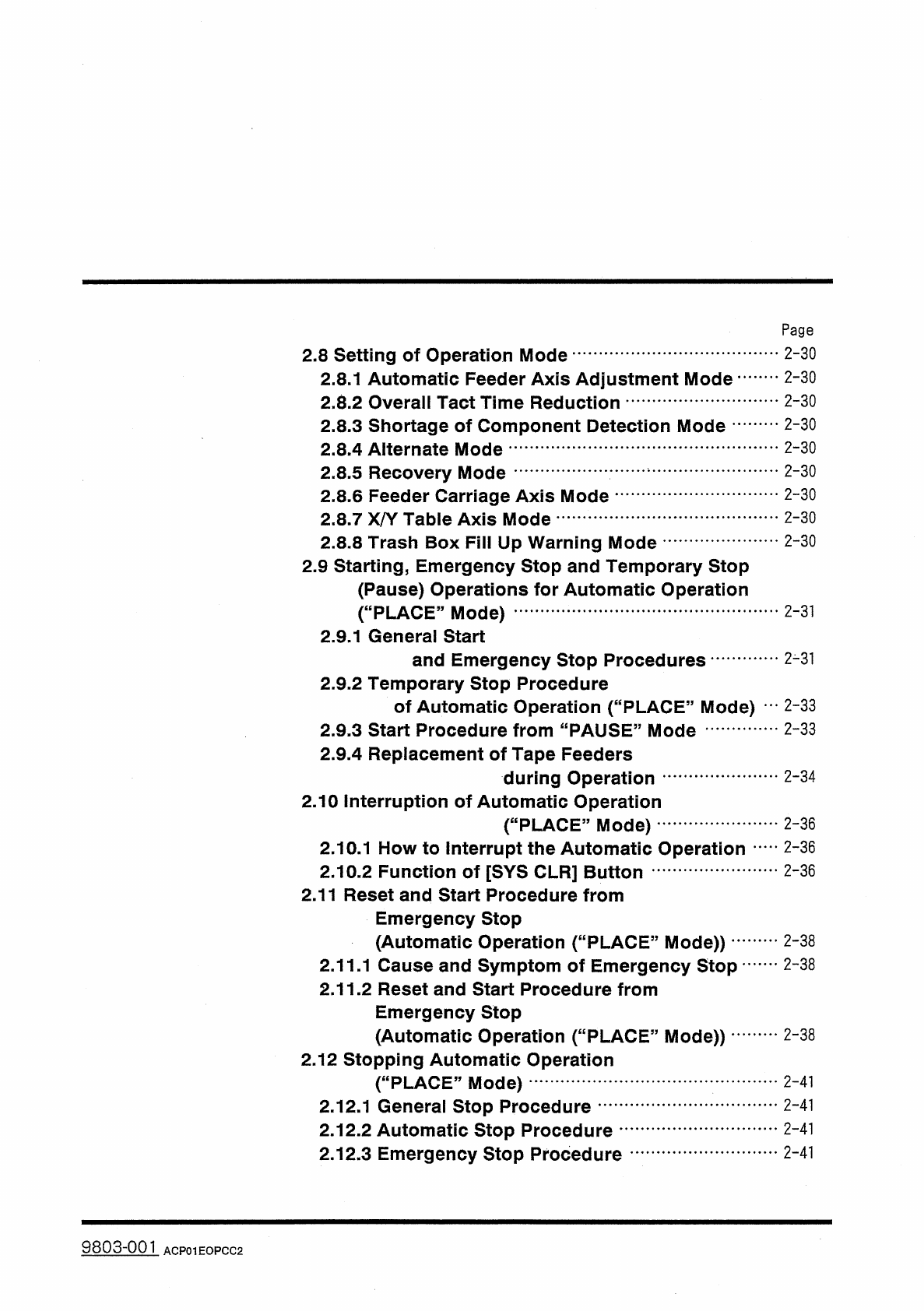 Page 2 - 30 2.8 Setting of Operation Mode 2.8 . 1 Automatic Feeder Axis Adjustment Mode • 2.8 . 2 Overall Tact Time Reduction 2.8 . 3 Shortage of Component Detection Mode • … 2.8 . 4 Alternate Mode 2.8 . 5 Recovery Mode …