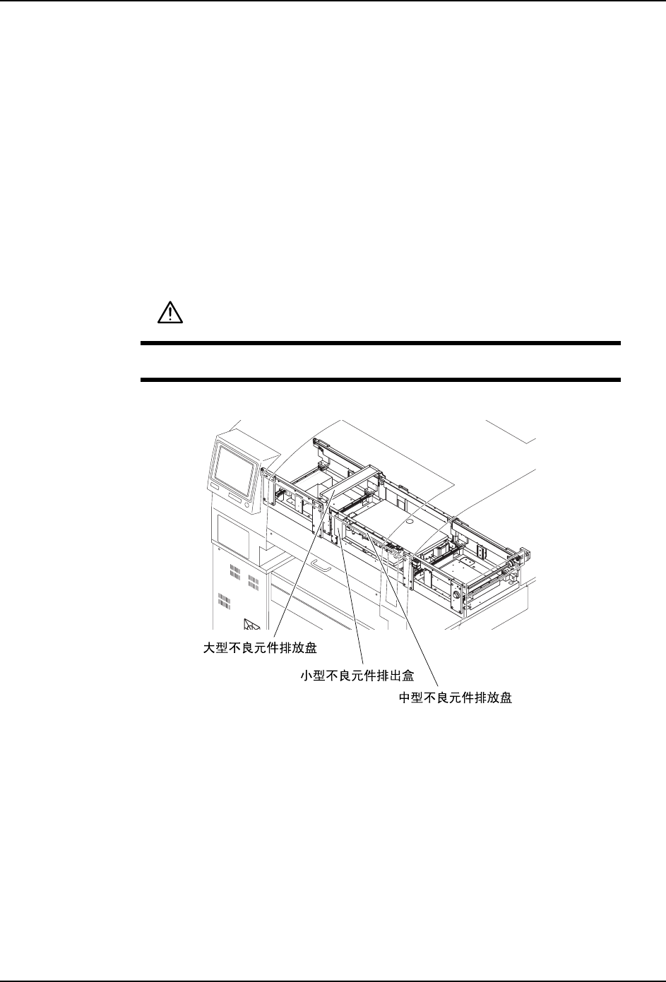 注意 )装卸大型不良元件排放盘或者更换自动工作头的时候,请将供料器拆除后再从空的料
