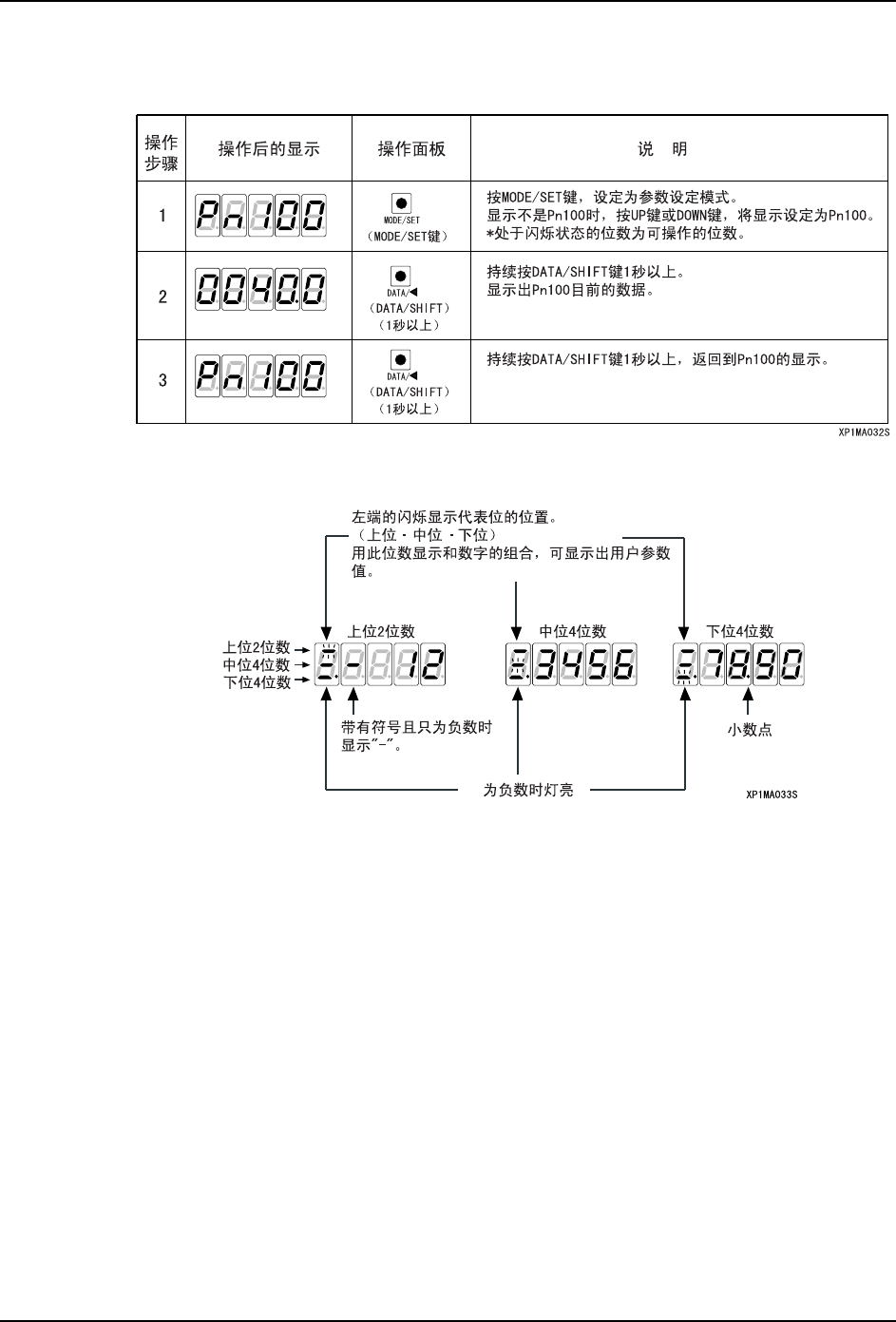 3. 以参数 「Pn20E = 1234567890」为例说明显示的方法。