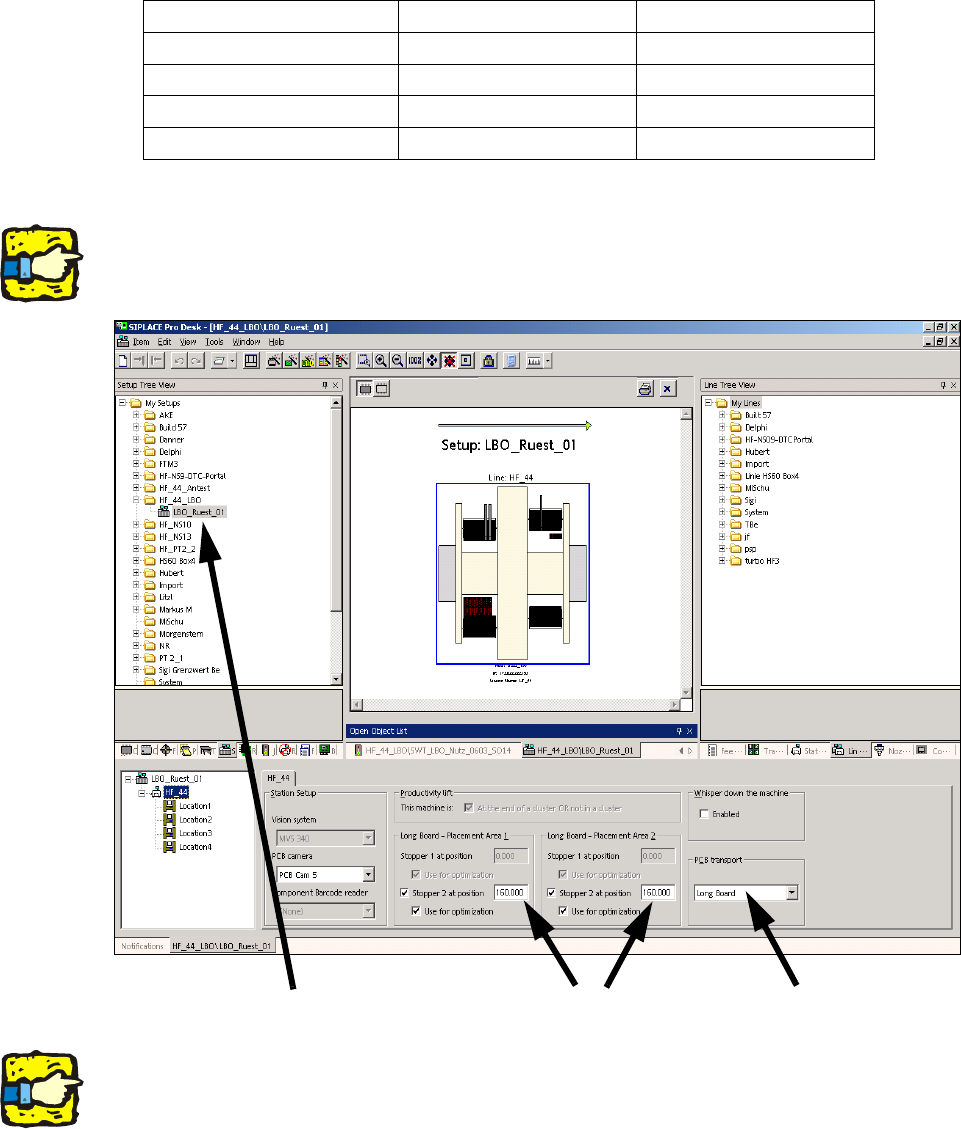 : For the PCB conveyor, select "Long board" and enter one of the values in the table under