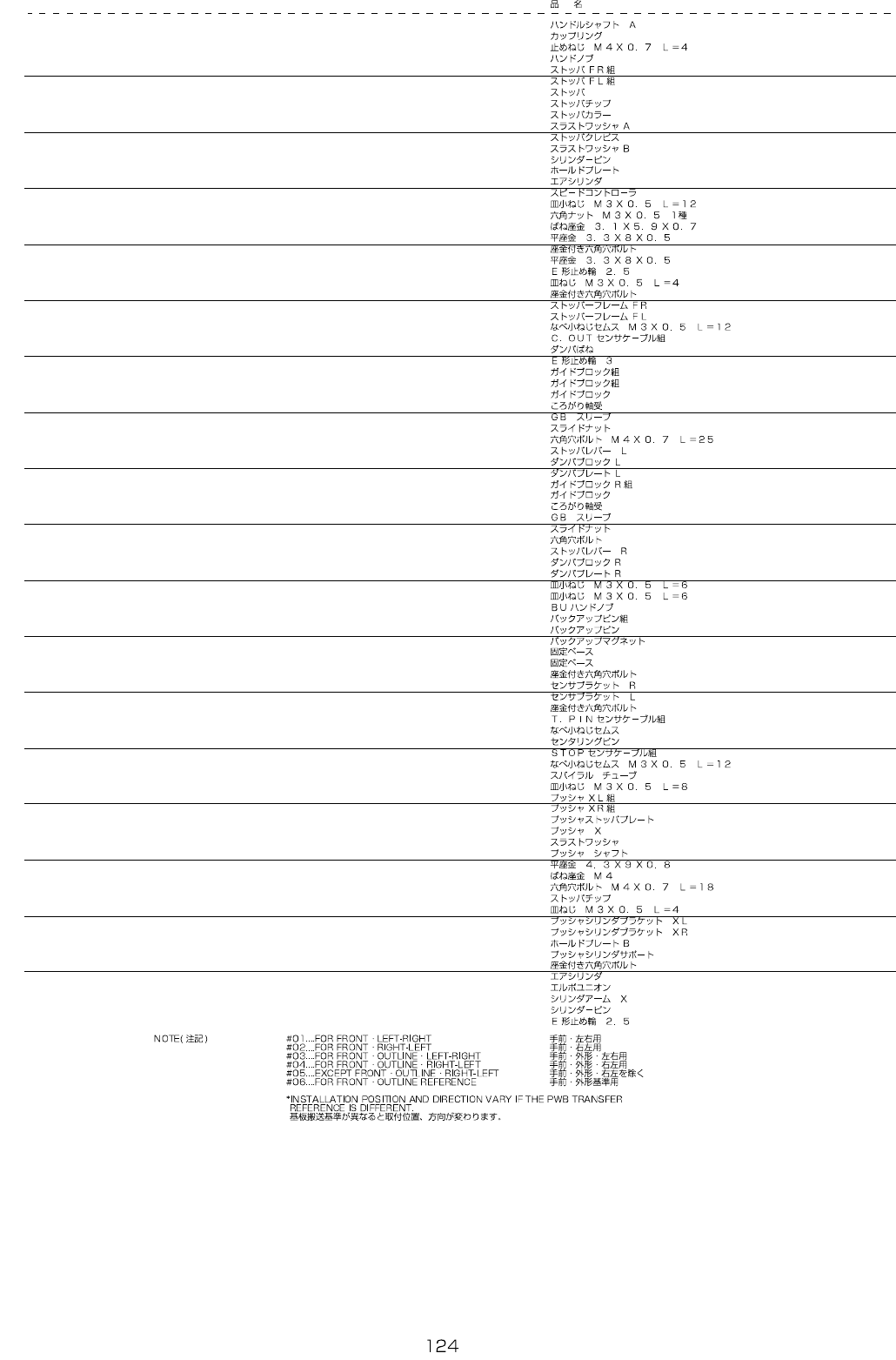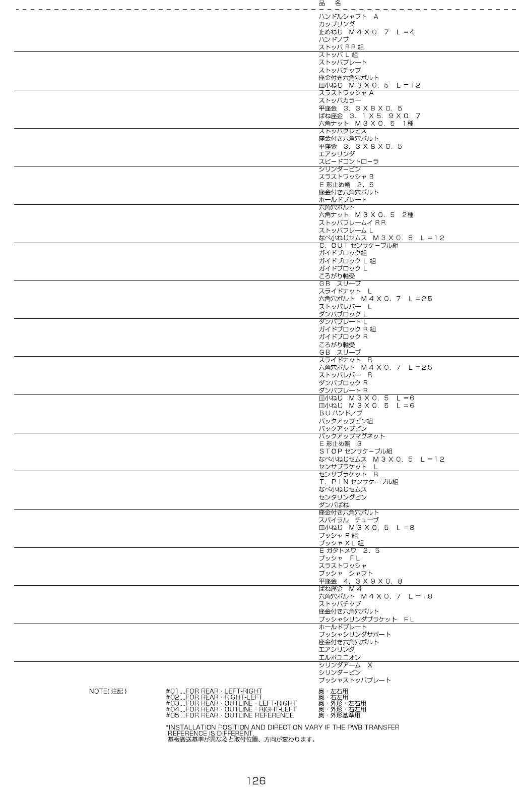 REF.NO NOTE PART NO D E S C R I P T I O N Qty