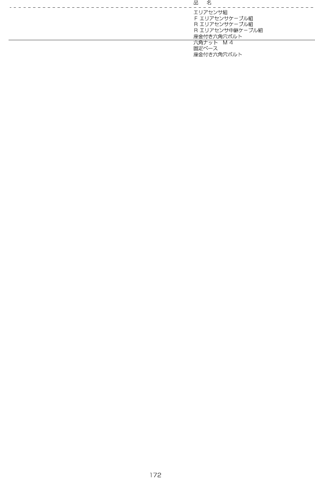 - - RE F . N O NOTE PART NO D E S C R I P T I O N Qty 1 E 958 1- 725-0B0 AREA SENSOR ASM. 1 2 E 958 1- 725-0A0 F A RE A S E N S O R CABL E A SM. (1) 3 E 958 2- 725-0A0 R AR E A SE N SOR CABLE ASM. (1) 4 E 959 0- 725-0A…