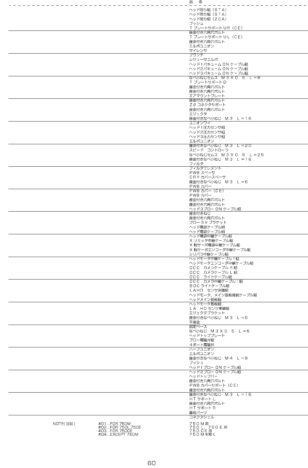 REF.NO NOTE PART NO D E S C R I P T I O N Qty