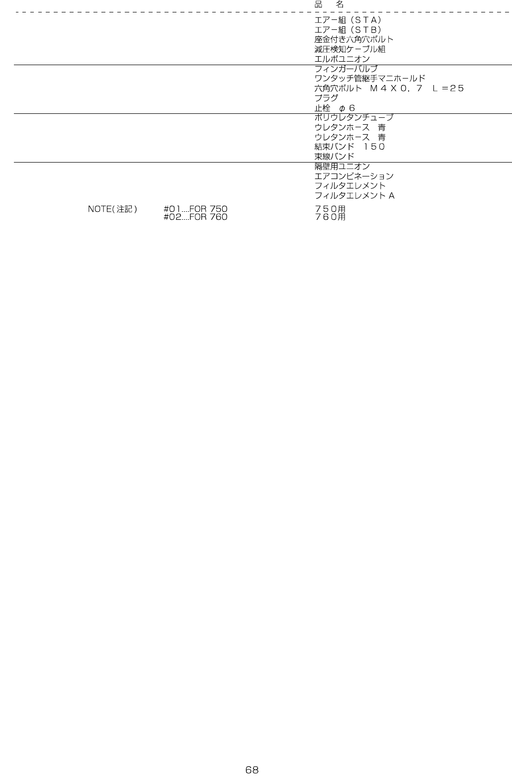 REF.NO NOTE PART NO D E S C R I P T I O N Qty