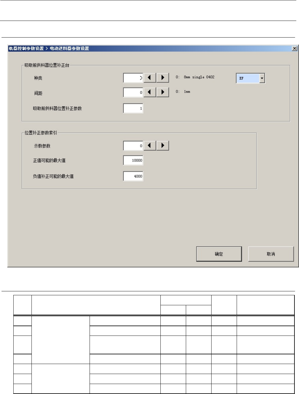 机器控制参数 2- 124 2-5- 35 -2 送料器种类 2-5- 35 -3 送料器种类 No. 类别 内容 1 0 8mm single 0402 2 1 8mm single 3 2 12mm 4 3 16mm 5 4 24mm 6 5 32mm 7 6 44mm 8 7 56mm 9 8 8mm double 10 9 8mm triple 11 10 72mm 12 11 88mm 13 12 ~ 19 预备 No. 类别…
